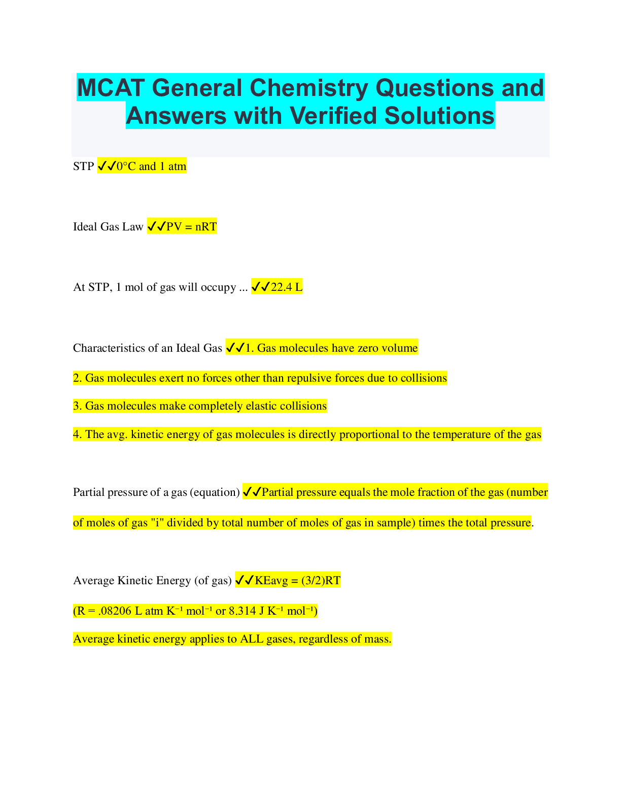 Chemistry > QUESTIONS & ANSWERS > MCAT General Chemistry Questions and Answers with Verified Solutions (All)