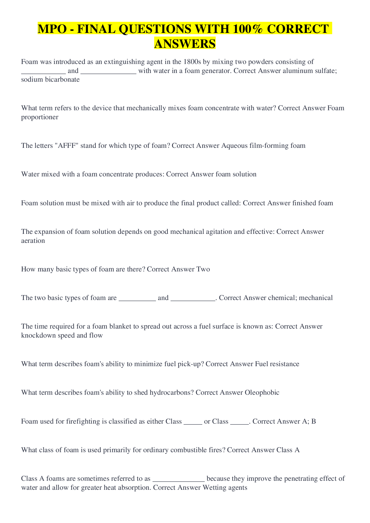 Chemistry > QUESTIONS & ANSWERS > MPO - FINAL QUESTIONS WITH 100% CORRECT ANSWERS (All)