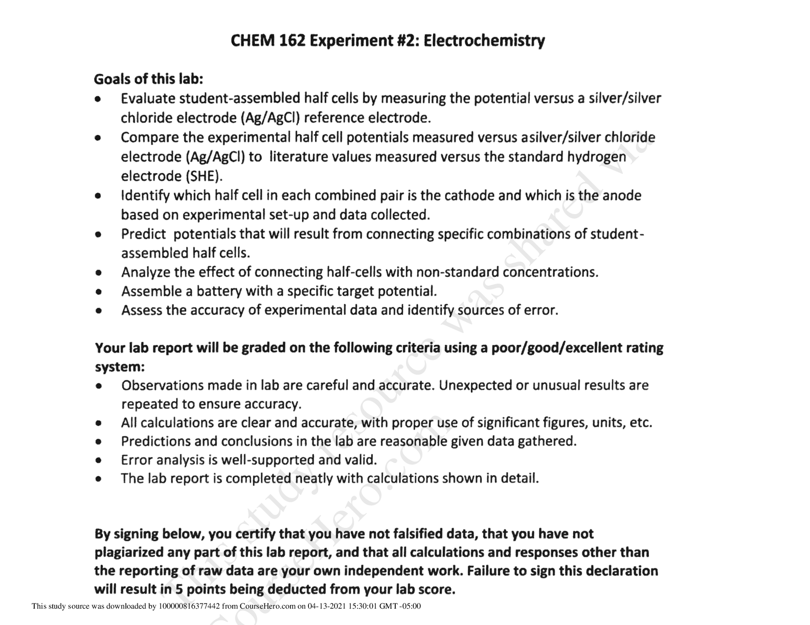 Chemistry > ESSAY > University of Washington - CHEM 162Chem 162 Lab #2 (All)