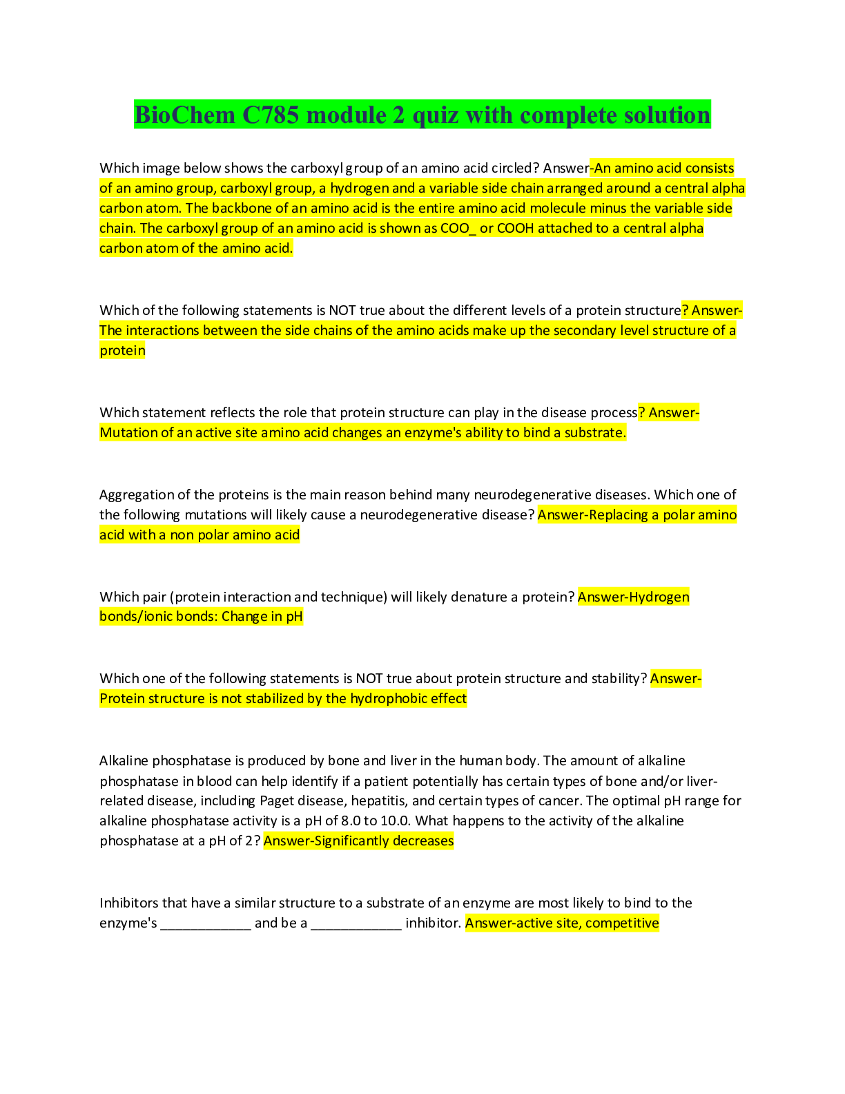 BioChemistry > EXAM > BioChem C785 module 2 quiz with complete solution (All)