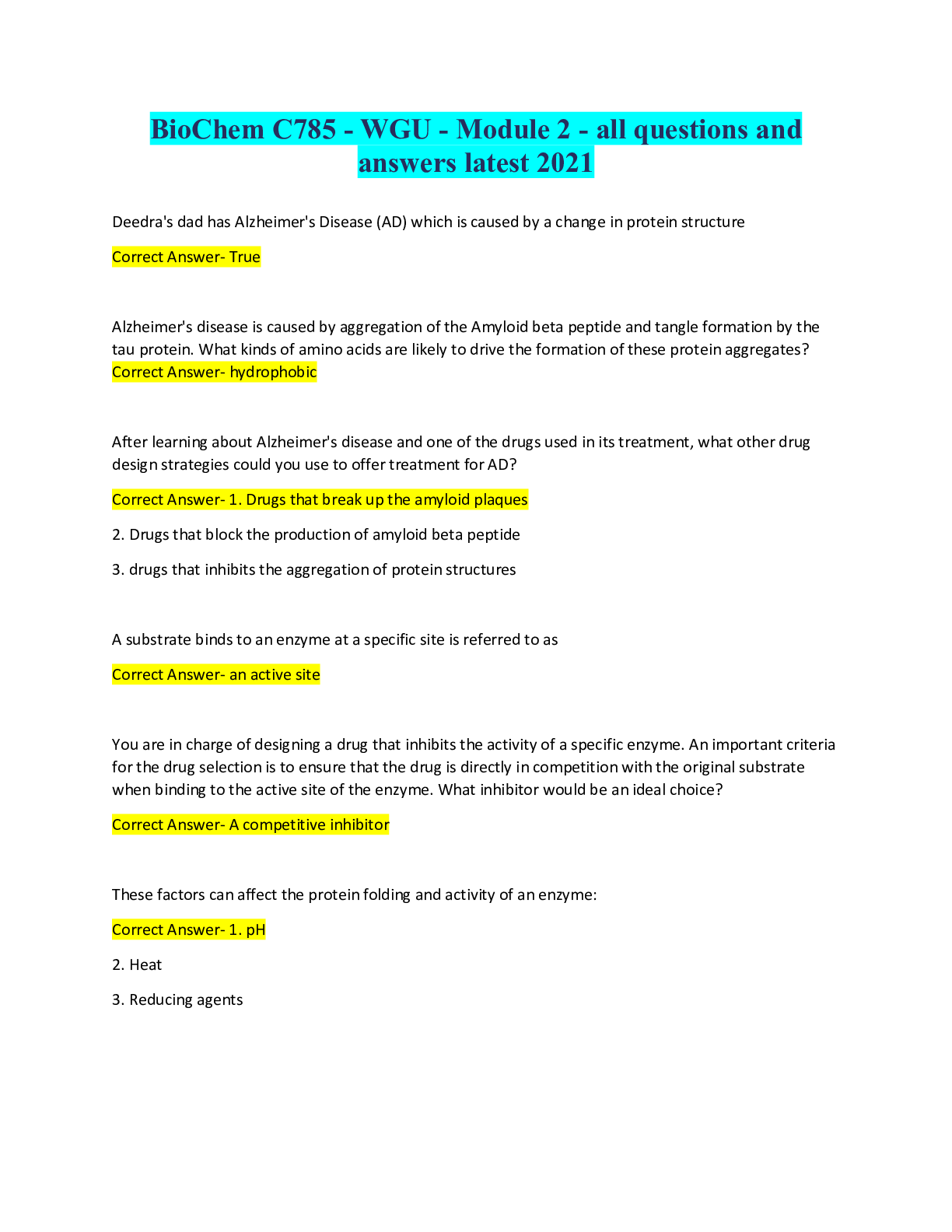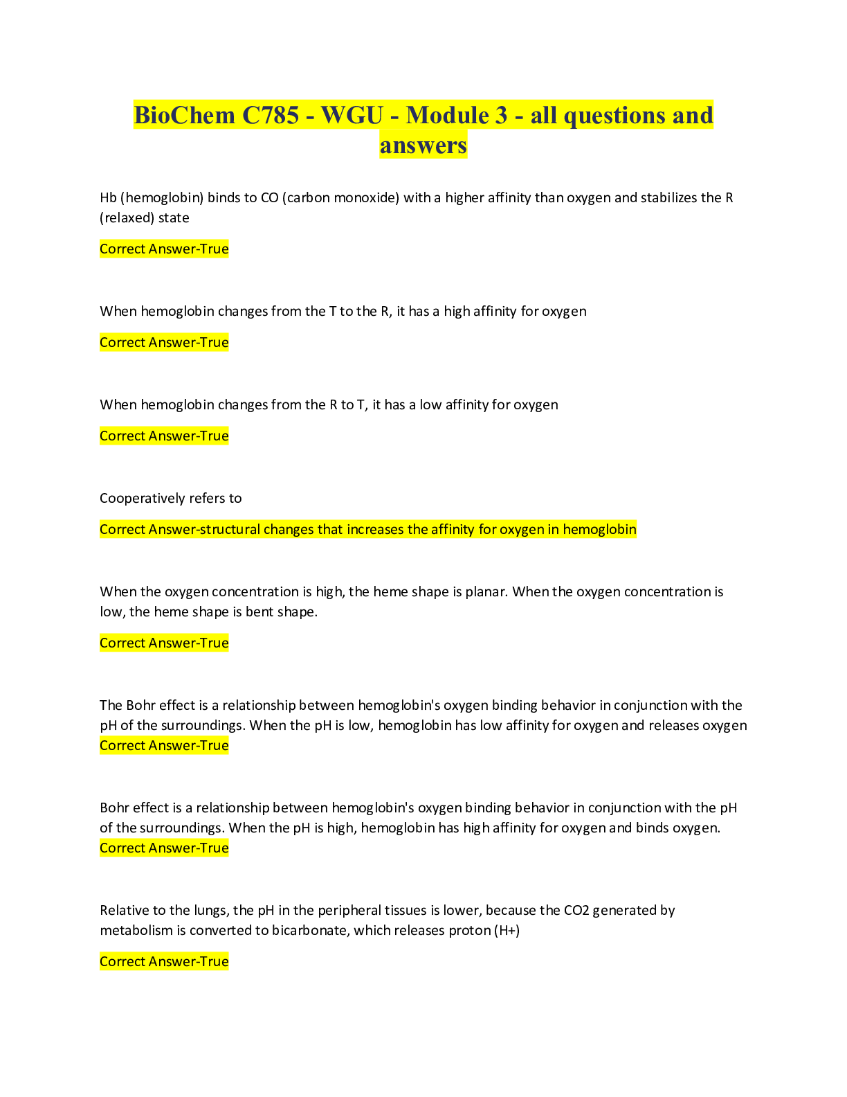 BioChemistry > QUESTIONS & ANSWERS > BioChem C785 - WGU - Module 2 - all questions and Answers with Verified Solutions (All)