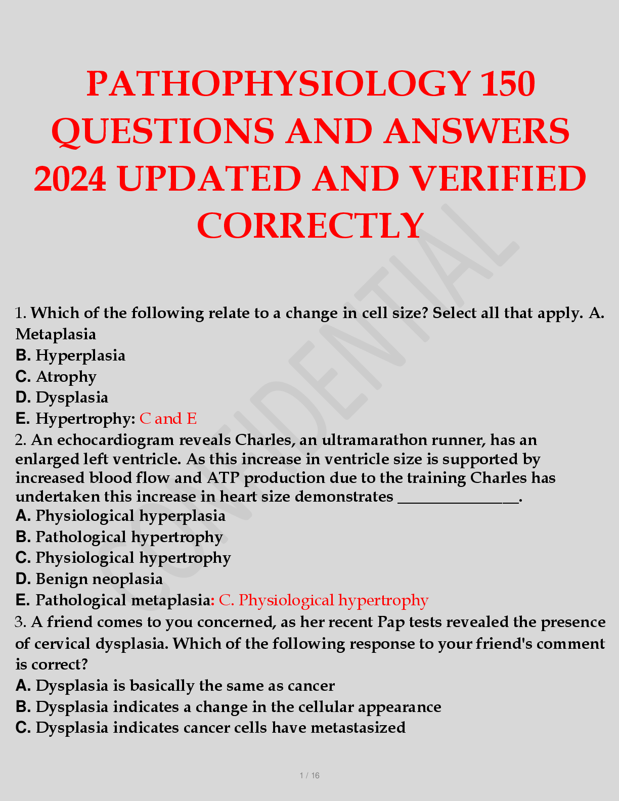 Pathophysiology > EXAM > PATHOPHYSIOLOGY 150 QUESTIONS AND ANSWERS 2024 UPDATED AND VERIFIED CORRECTLY (All)