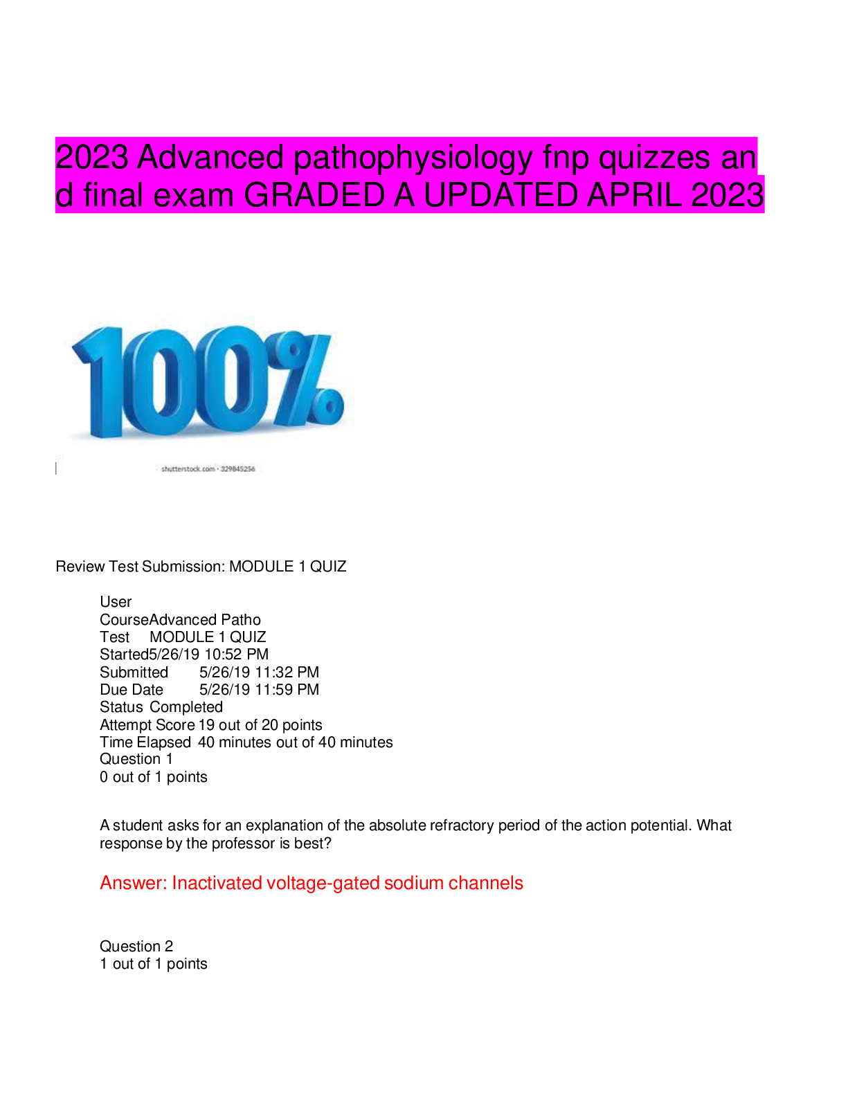 Pathophysiology > EXAM > advanced pathophysiology fnp quizzes and final exam (All)