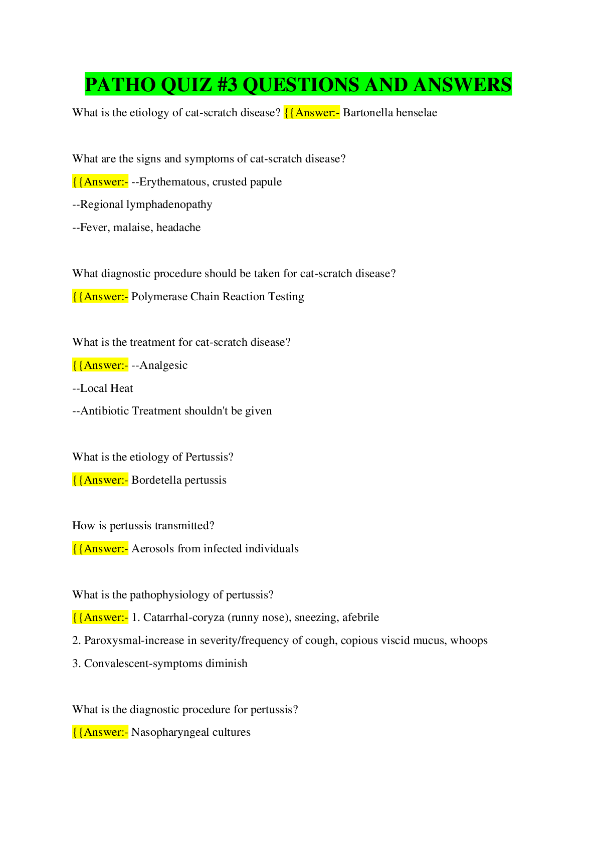Pathophysiology > EXAM > PATHO QUIZ 3 QUESTIONS WITH COMPLETE SOLUTION| MULTIPLE CHOICE (All)