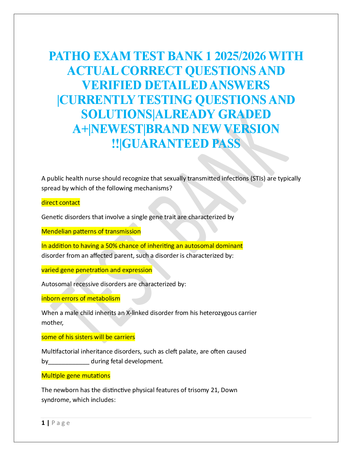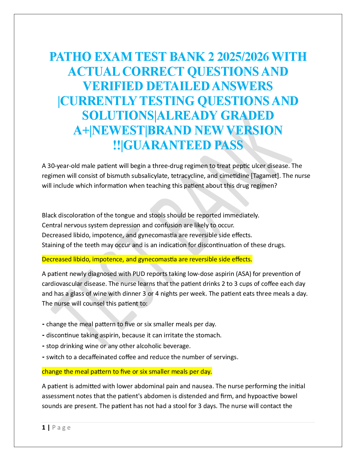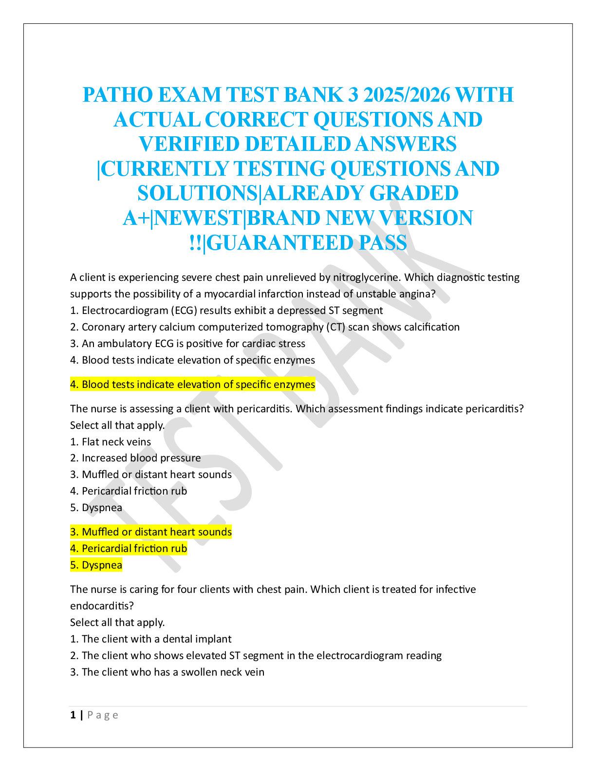 Pathophysiology > EXAM > 2025 ADVANCED PATHOPHYSIOLOGY EXAM LATEST REAL QUESTIONS AND CORRECT ANSWERS GRADE A (All)