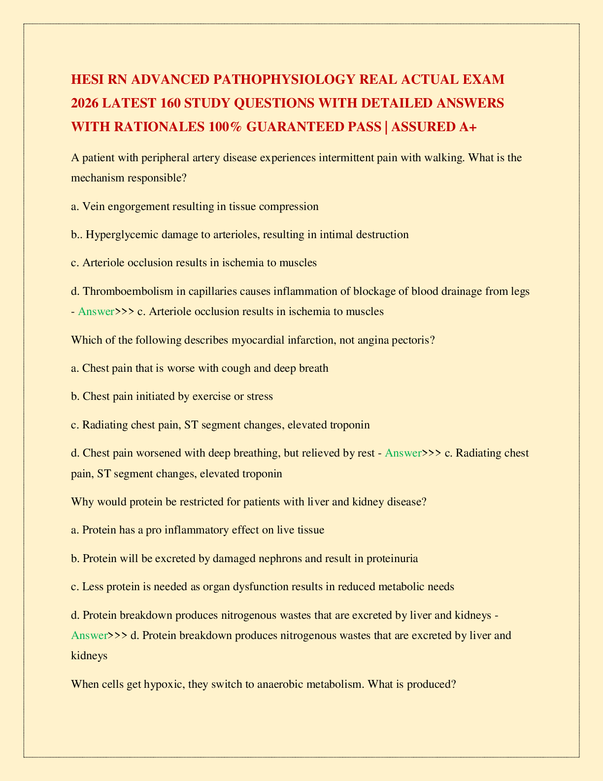 Pathophysiology > EXAM > HESI RN ADVANCED PATHOPHYSIOLOGY REAL ACTUAL EXAM 2026 LATEST 160 STUDY QUESTIONS WITH DETAILED ANSWERS WITH RATIONALES 100% GUARANTEED PASS | ASSURED A+ (All)