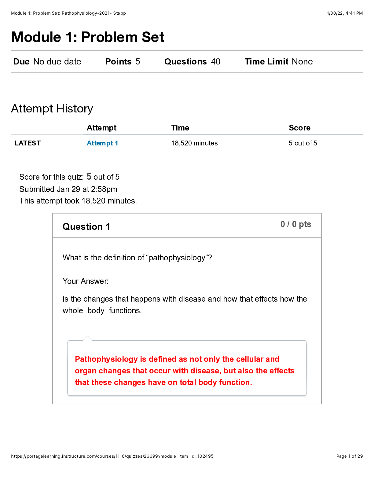 Pathophysiology > EXAM > Portage Learning NURS 231 Pathophysiology Module 1 Exam 2022 -Complete Solutions (Graded A) (All)
