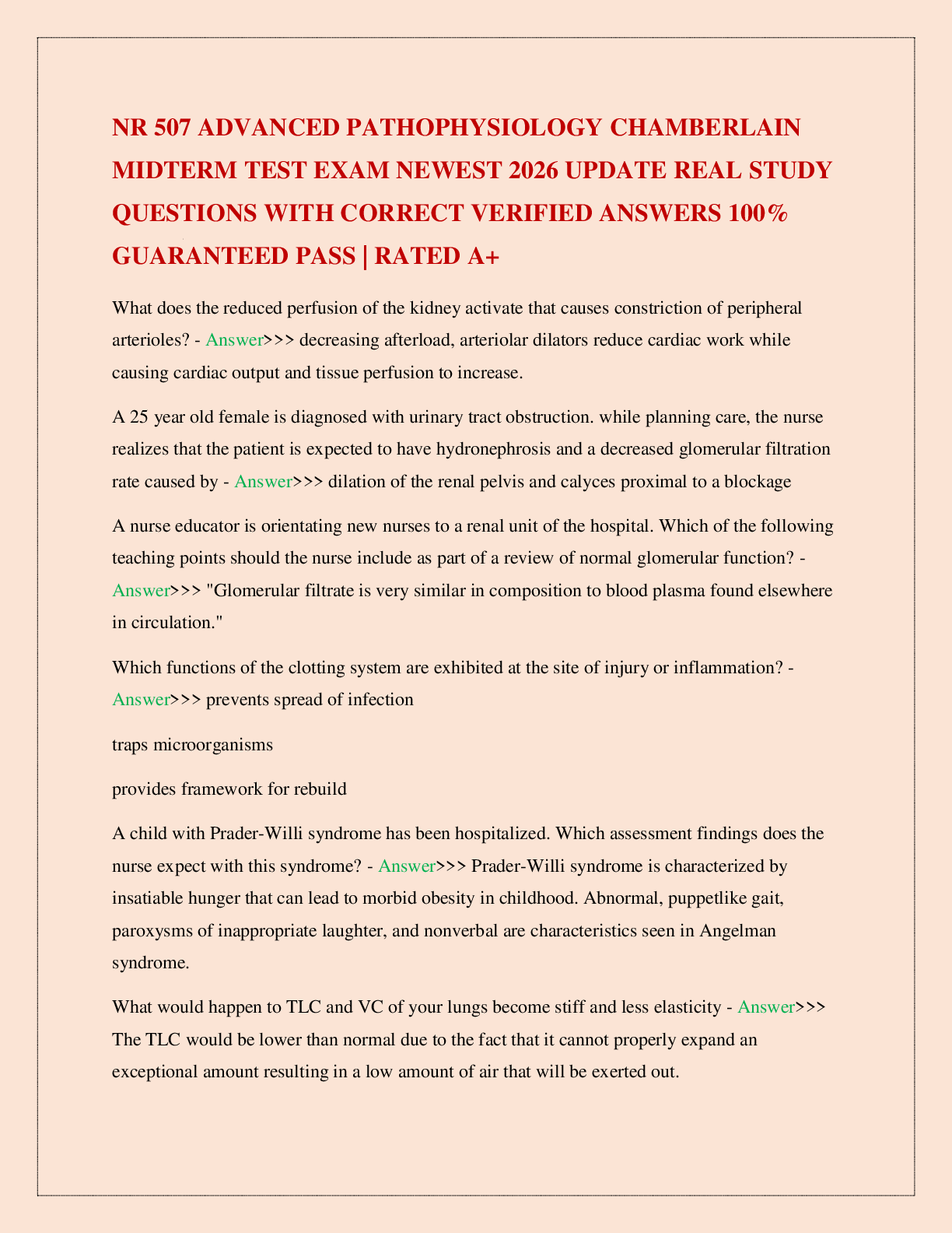 Pathophysiology > EXAM > NR 507 ADVANCED PATHOPHYSIOLOGY CHAMBERLAIN MIDTERM TEST EXAM NEWEST 2026 UPDATE REAL STUDY QUESTIONS WITH CORRECT VERIFIED ANSWERS 100% GUARANTEED PASS | RATED A+ (All)