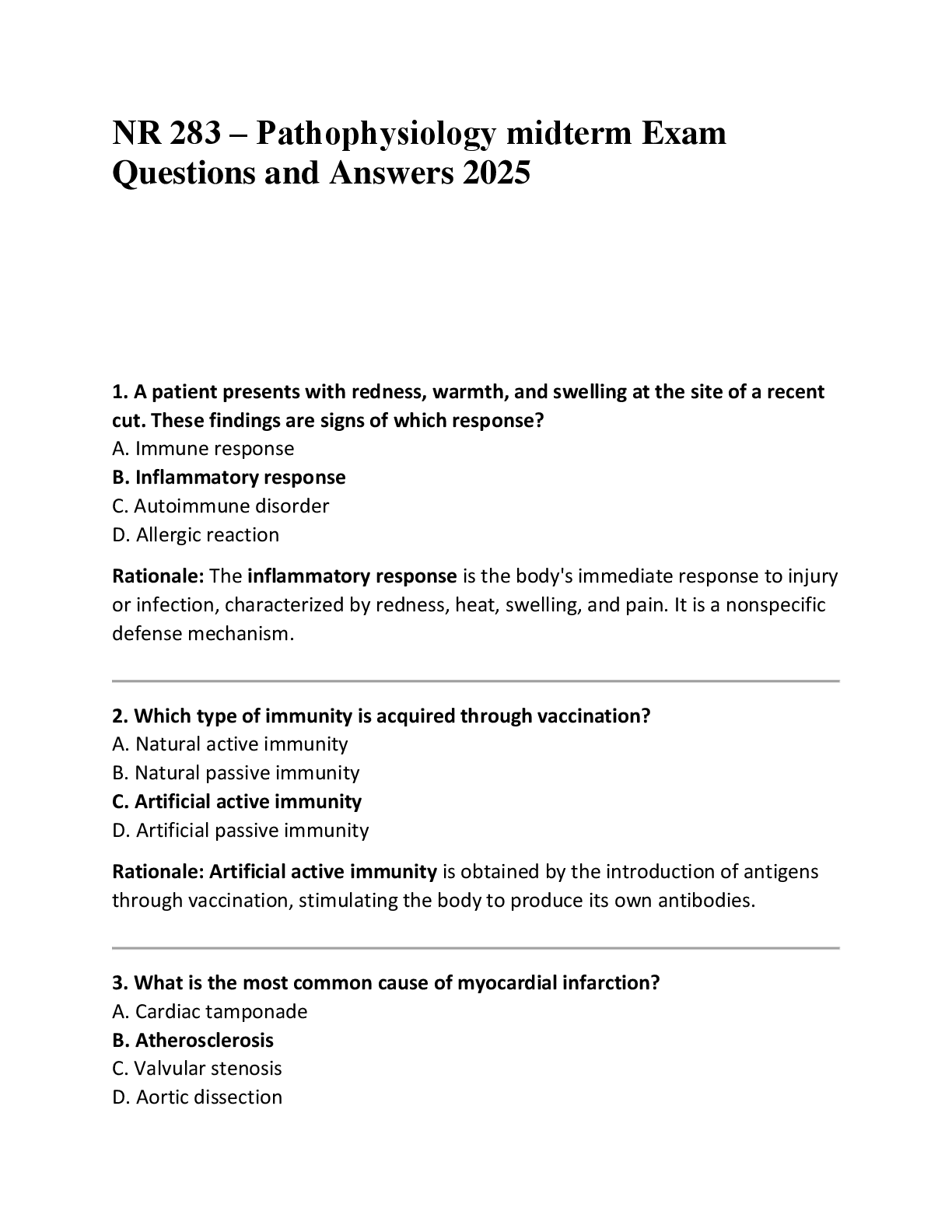 Pathophysiology > EXAM > NR 283 – Pathophysiology midterm Exam Questions and Answers 2025 (All)