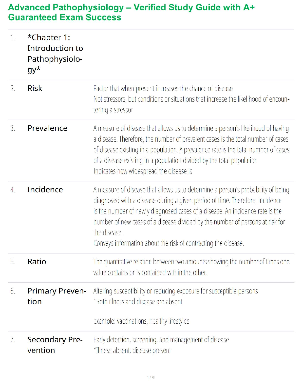 Pathophysiology > STUDY GUIDE > Advanced Pathophysiology – Verified Study Guide with A+ Guaranteed Exam Success (All)