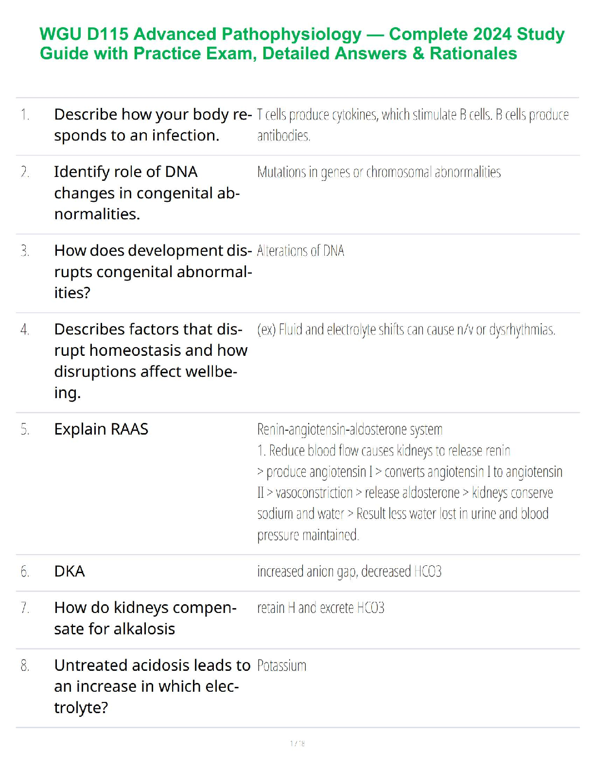 Pathophysiology > STUDY GUIDE > WGU D115 Advanced Pathophysiology — Complete 2024 Study Guide with Practice Exam, Detailed Answers & Rationales (All)