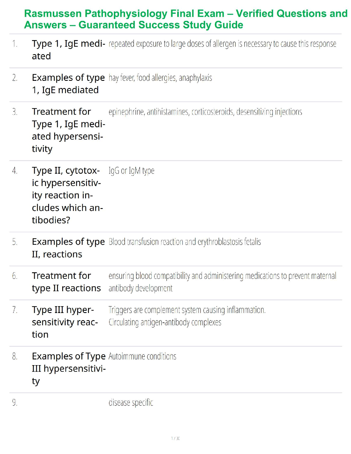 Pathophysiology > STUDY GUIDE > Rasmussen Pathophysiology Final Exam – Verified Questions and Answers – Guaranteed Success Study Guide (All)