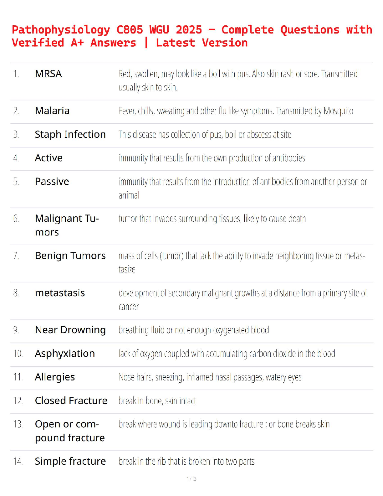 Pathophysiology > QUESTIONS & ANSWERS > Pathophysiology C805 WGU 2025 – Complete Questions with Verified A+ Answers | Latest Version (All)