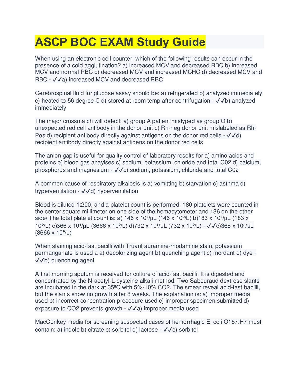 Pathophysiology > QUESTIONS & ANSWERS > ASCP BOC EXAM Study Guide (All)