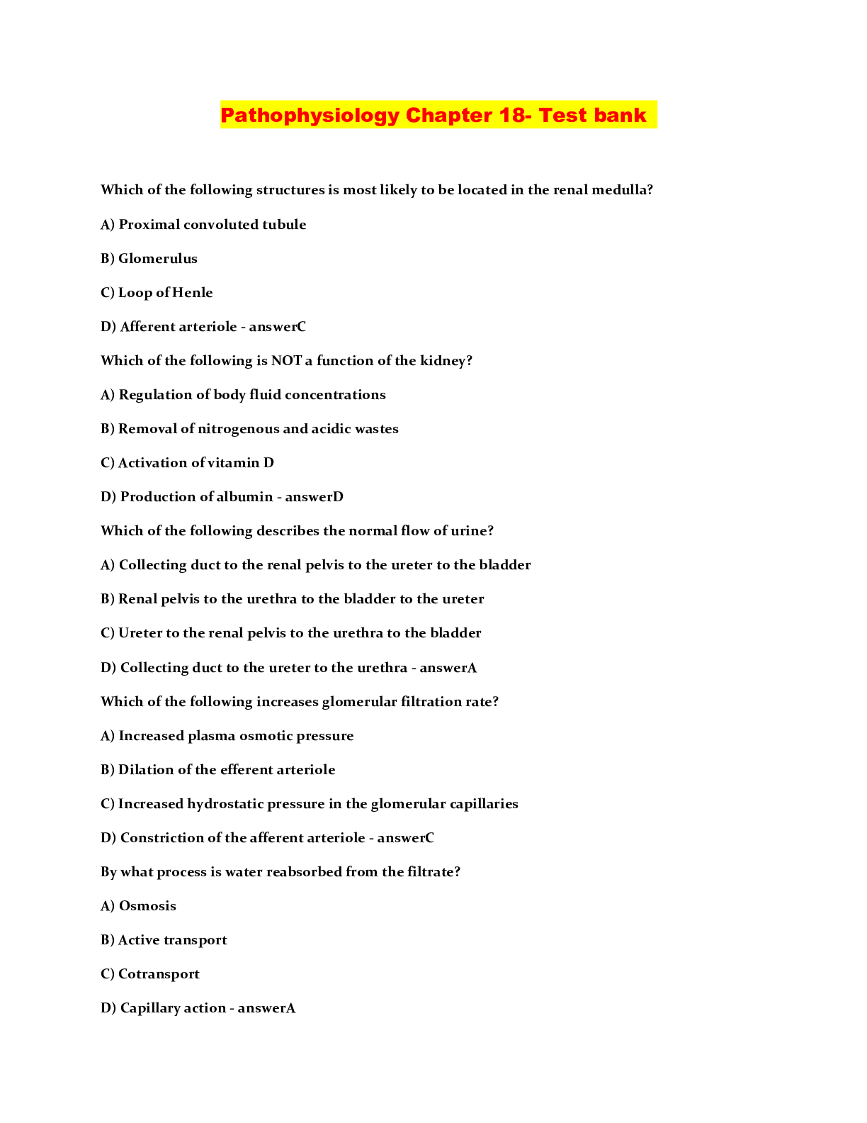 Pathophysiology > QUESTIONS & ANSWERS > Pathophysiology Chapter 18- Test bank (All)