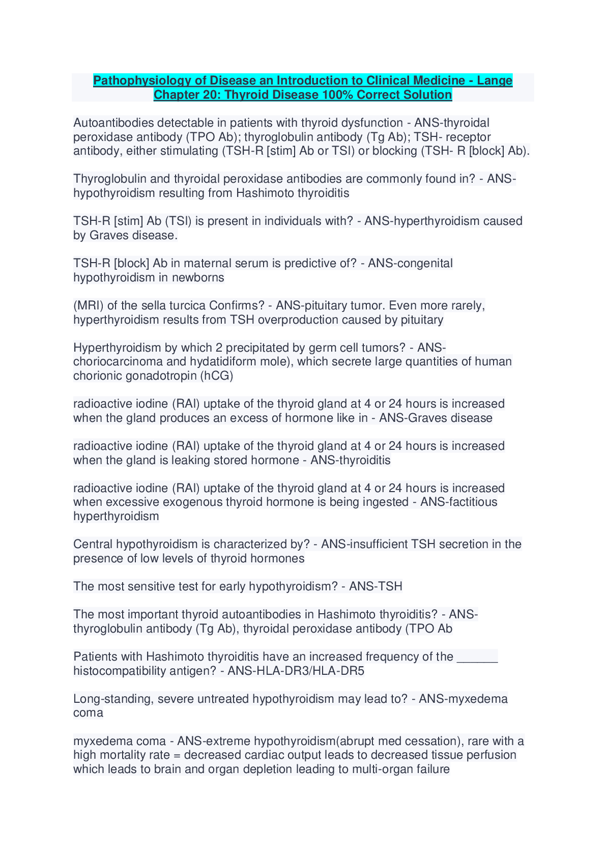Pathophysiology > QUESTIONS & ANSWERS > Pathophysiology of Disease an Introduction to Clinical Medicine - Lange Chapter 20: Thyroid Disease 100% Correct Solution (All)