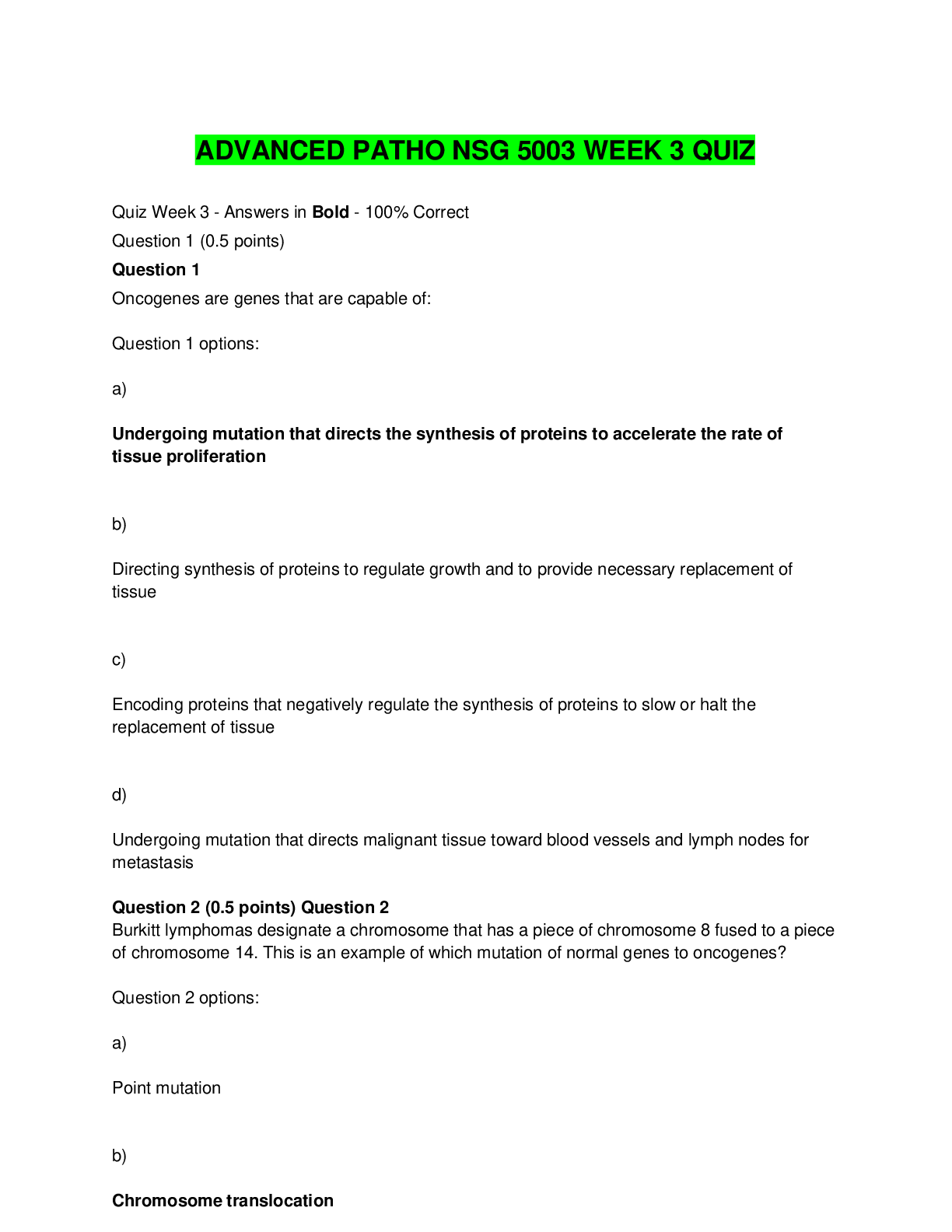 Pathophysiology > EXAM > ADVANCED PATHO NSG 5003 WEEK 3 QUIZ ANSWERED CORRECTLY (All)