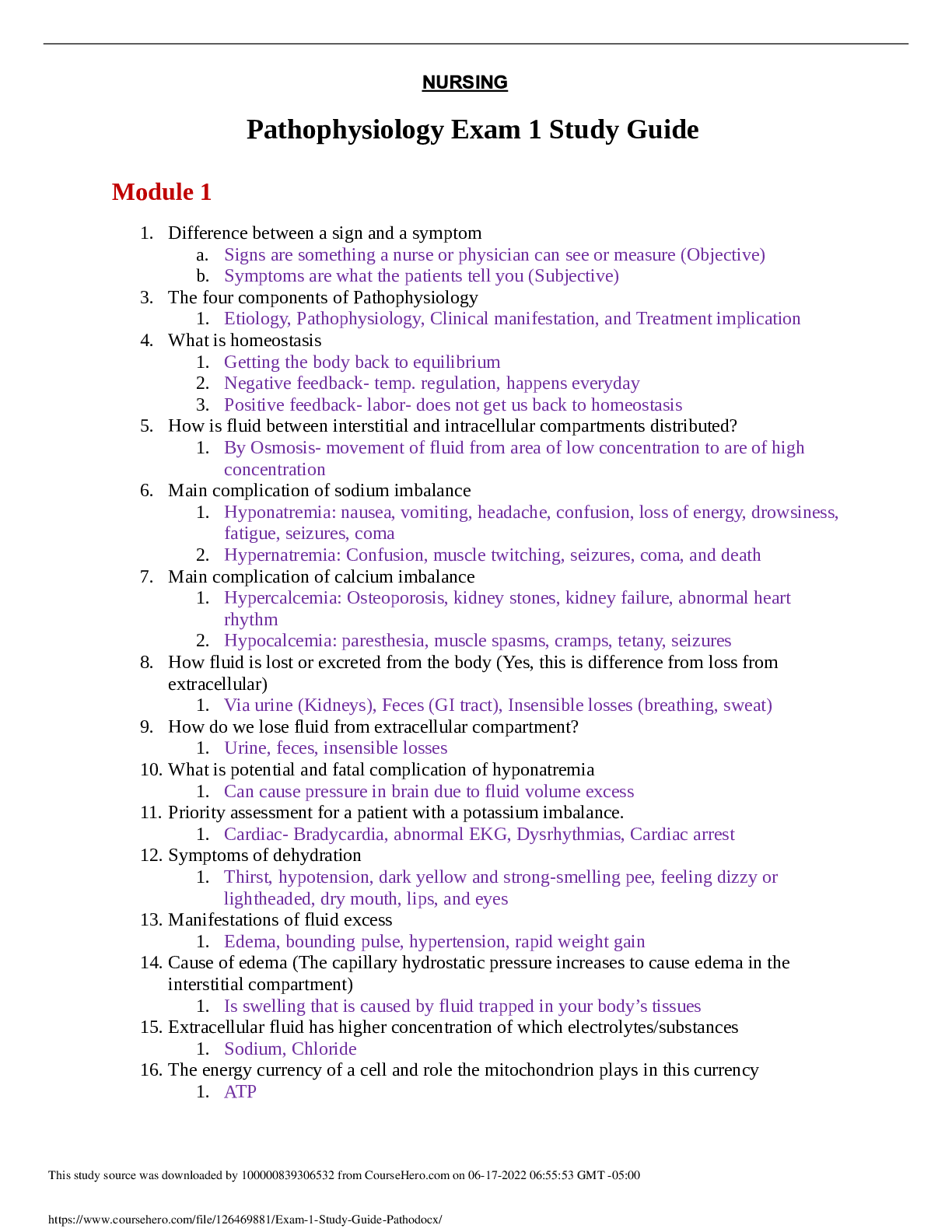 Pathophysiology > EXAMs > Pathophysiology Exam 1 Study Guide Module 1 (All)