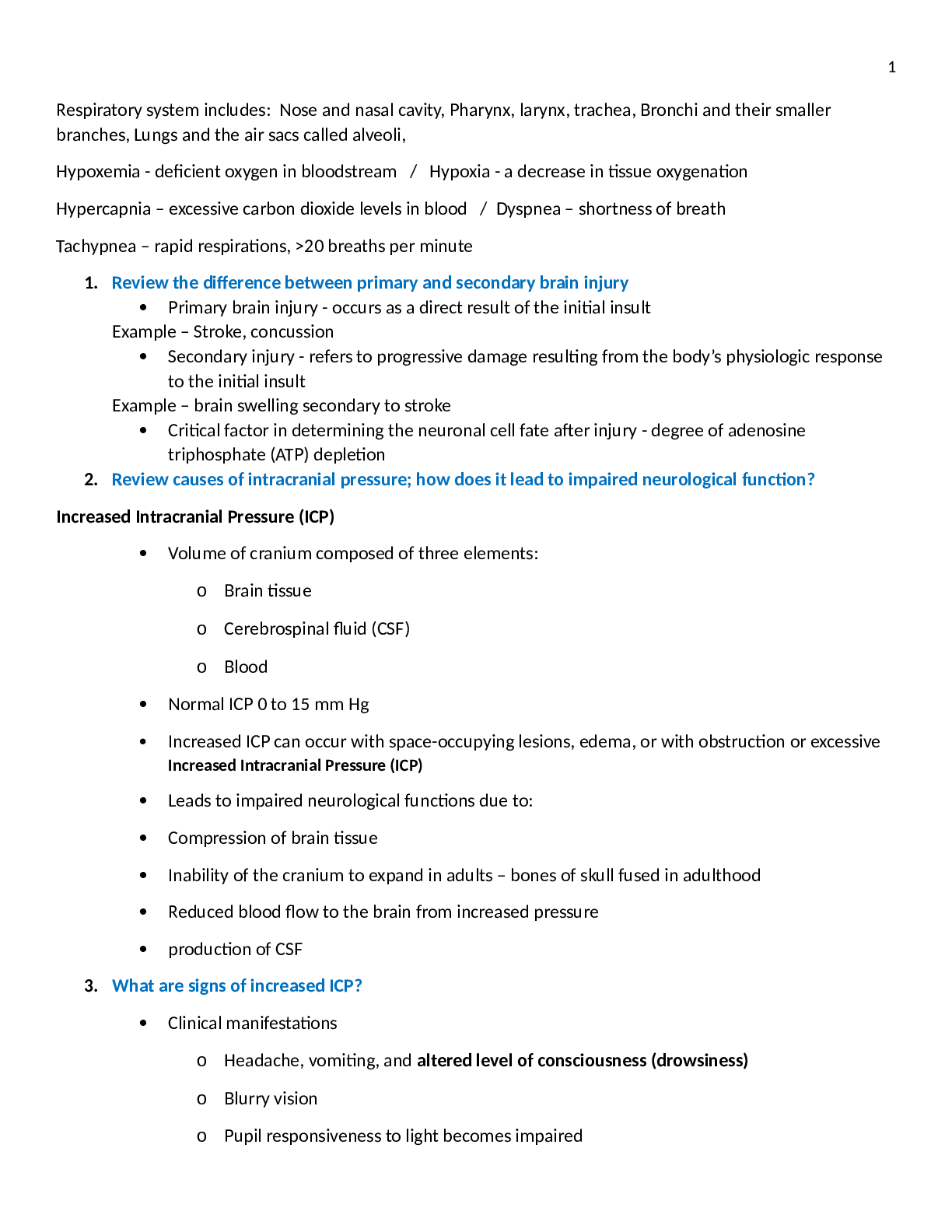Pathophysiology > EXAMs > NUR2063: Essentials of Pathophysiology Exam 1 Blueprint Winter 2021 (All)