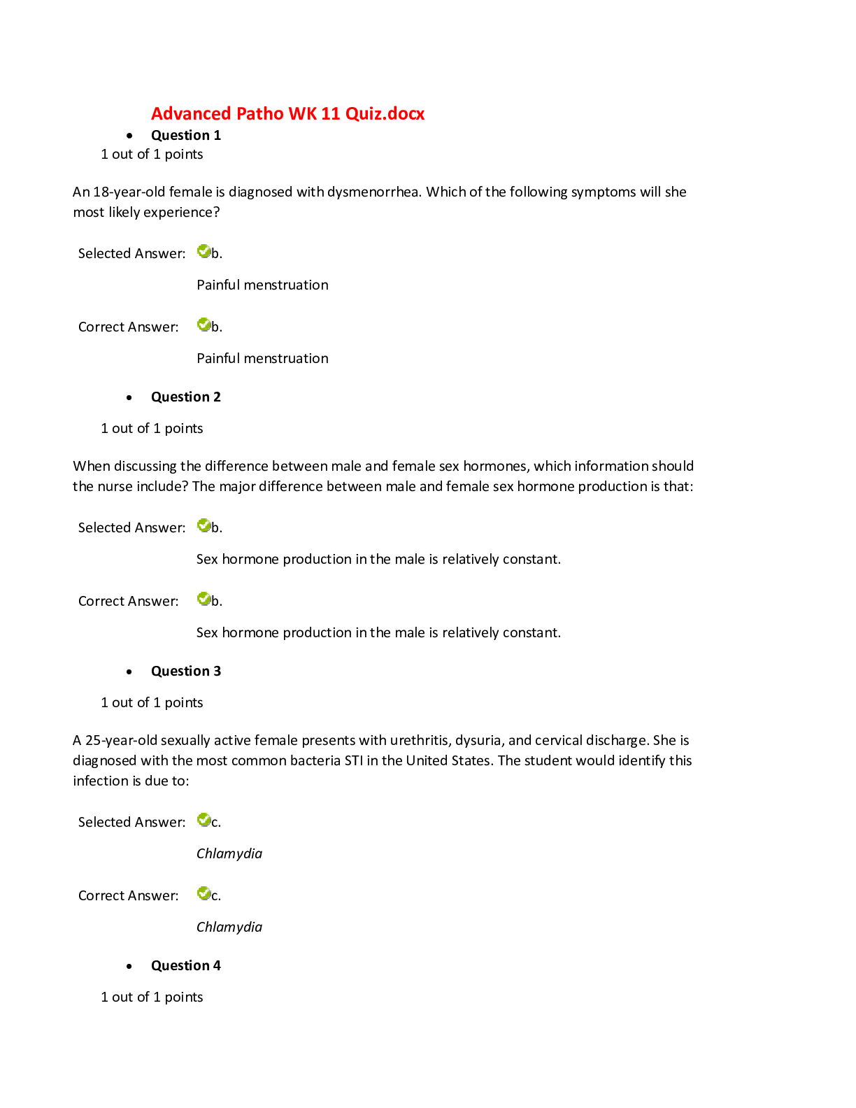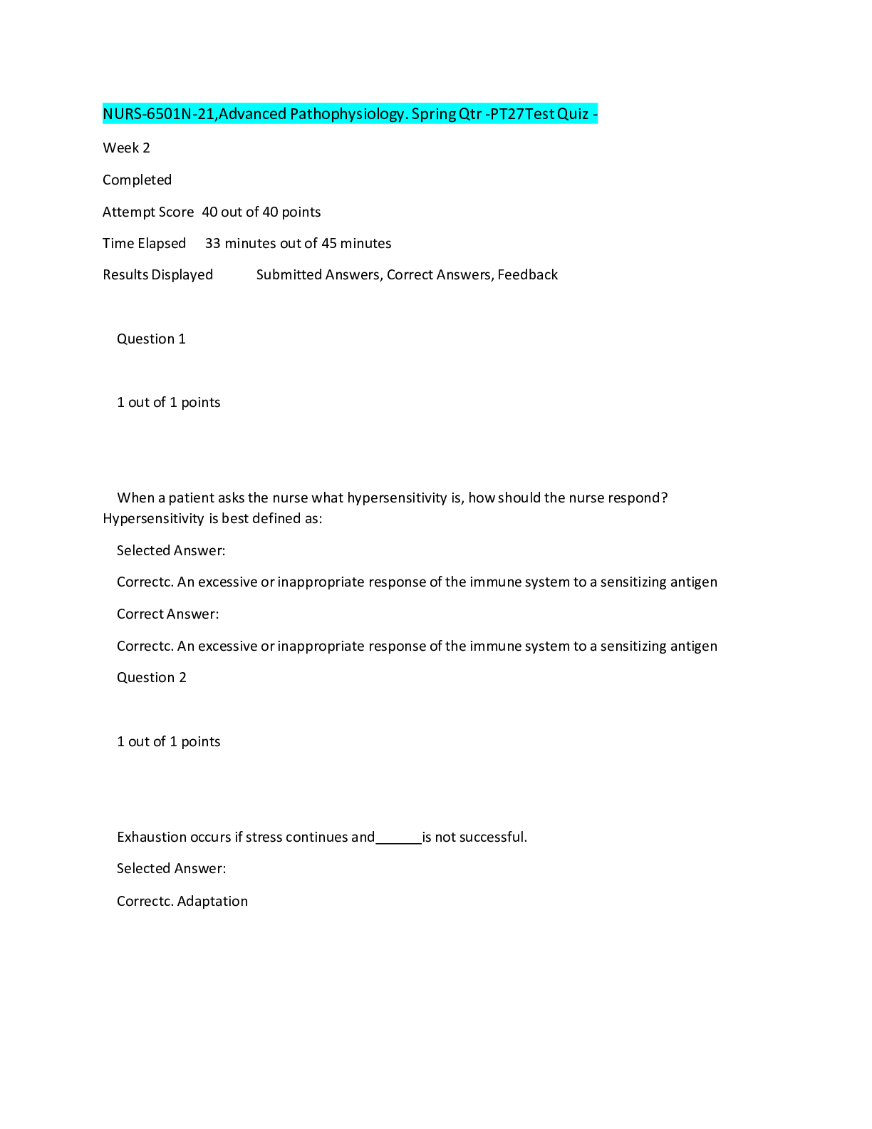 Pathophysiology > EXAM > NURS 6501quiz 8 questions and answers all latest and correct 2021 (All)