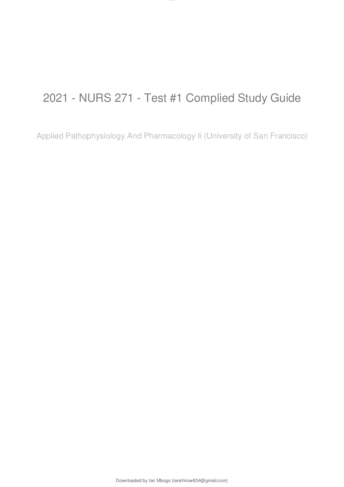 Pathophysiology > STUDY GUIDE > 2021 - NURS 271 - Test #1 Complied Study Guide Applied Pathophysiology And Pharmacology Ii (NURS 271) (All)