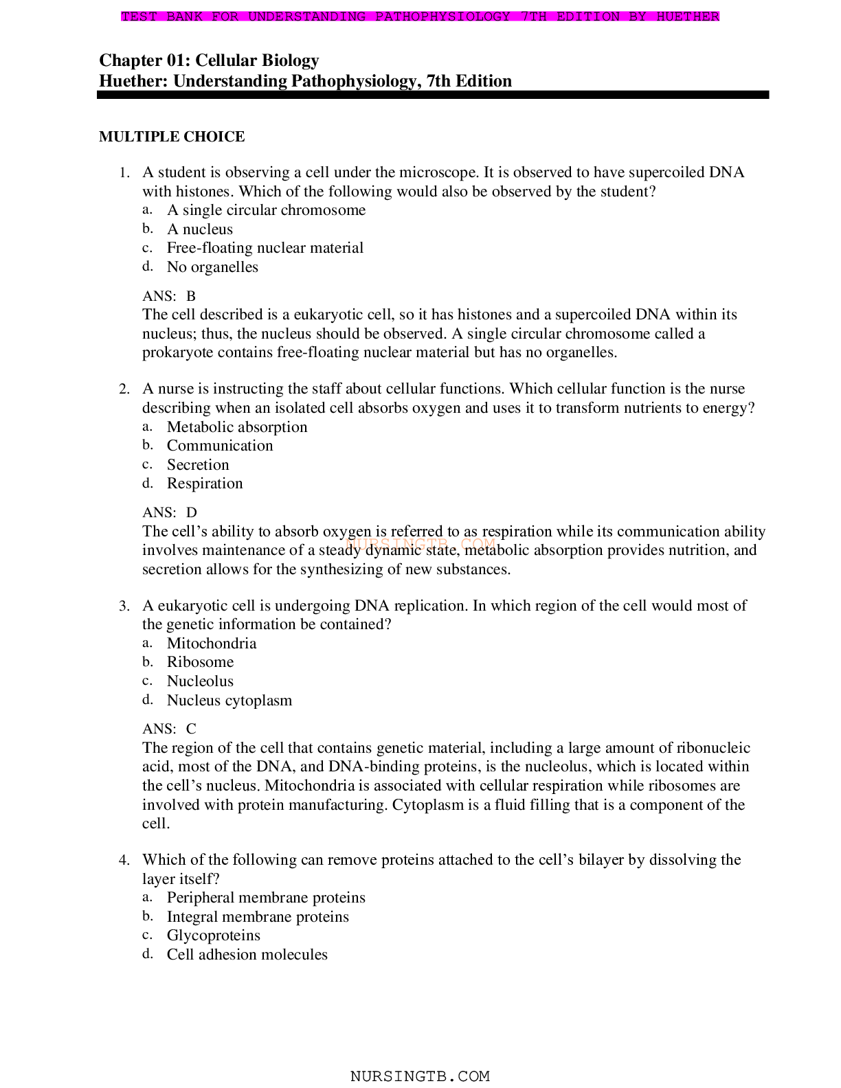 Pathophysiology > TEST BANKS > TEST BANK FOR UNDERSTANDING PATHOPHYSIOLOGY 7TH EDITION BY HUETHER. All chapters 1-44. Questions, Answers and Explantion in 325 Pages. (All)