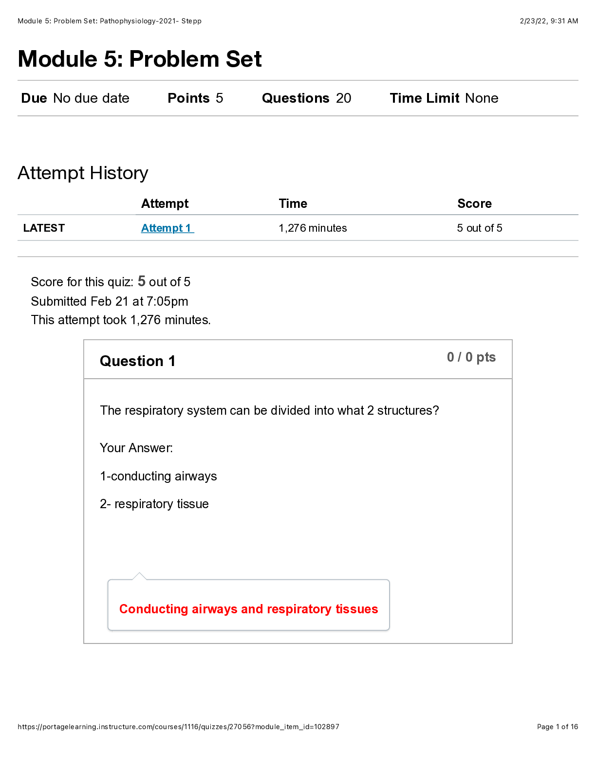 Pathophysiology > EXAM > Portage Learning NURS 231 Pathophysiology All Modules Exams - Complete Solutions (Graded A) (All)