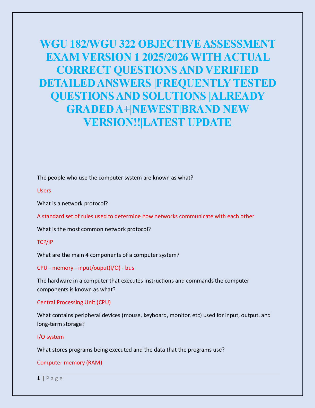 Information Technology > EXAM > WGU 182/WGU 322 OBJECTIVE ASSESSMENT EXAM VERSION 1 2025/2026 (All)