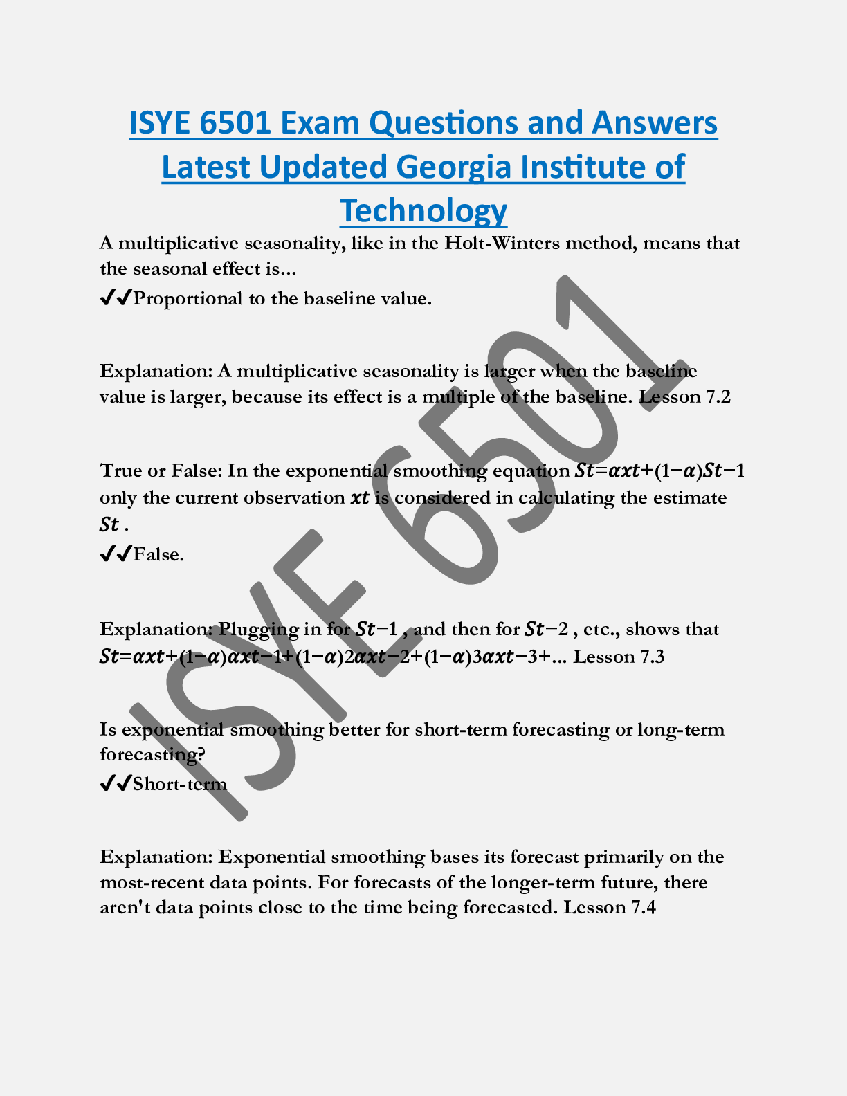 Information Technology > EXAM > ISYE 6501 Exam Questions and Answers Latest Updated Georgia Institute of Technology (All)