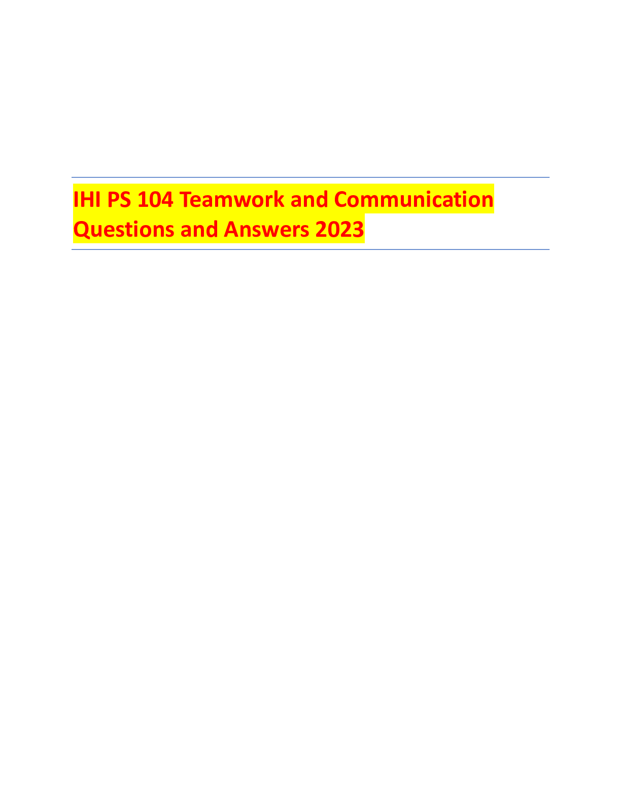 Information Technology > EXAM > IHI PS 104 Teamwork and Communication Questions and Answers 2023 (All)