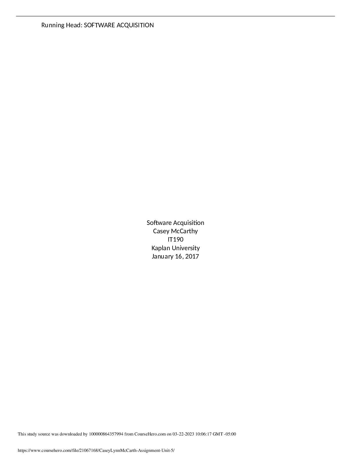 Information Technology > EXAM > IT 190 Software Acquisition Past Paper (All)