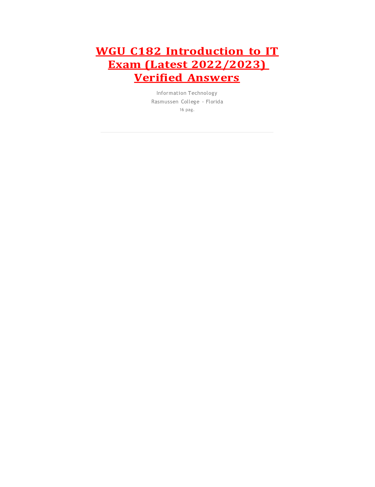 Information Technology > EXAM > WGU C182 Introduction to IT Exam (Latest 2022/2023) Verified Answers (All)