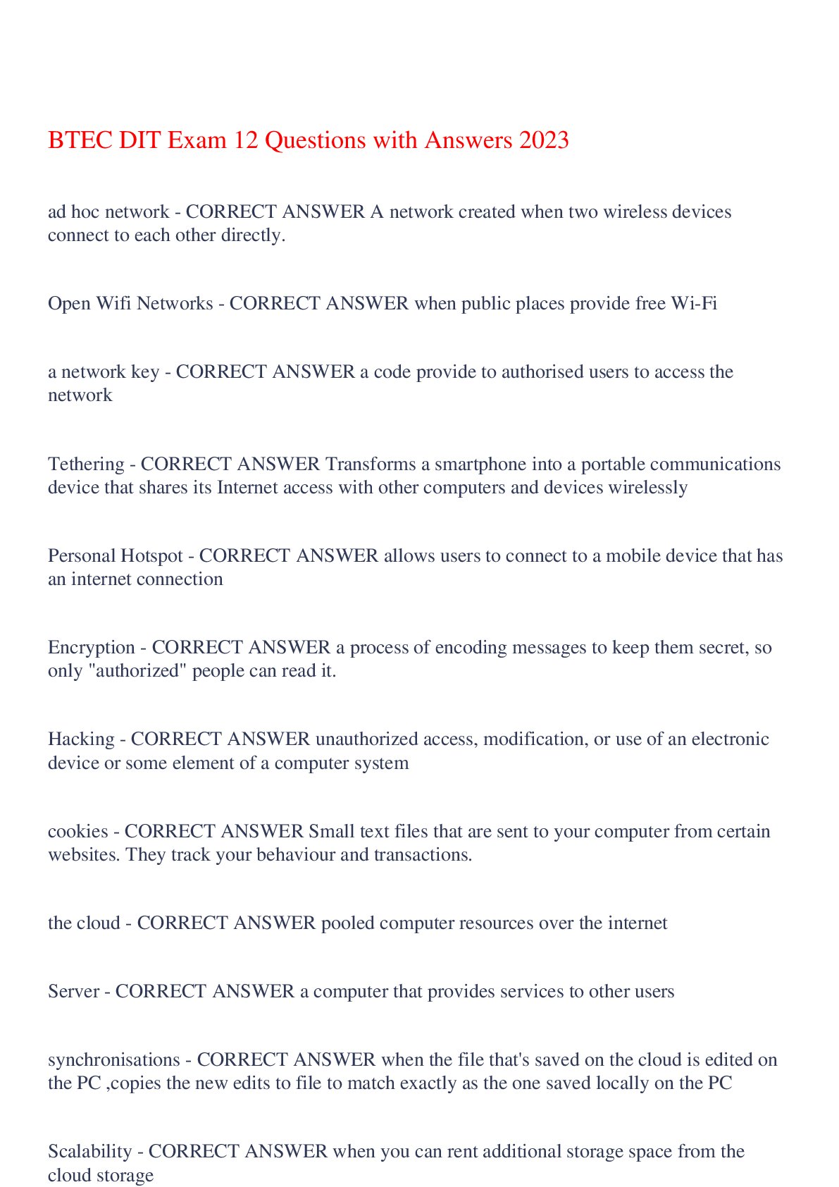 Information Technology > EXAM > BTEC DIT Exam 12 Questions with Answers 2023,100% CORRECT (All)