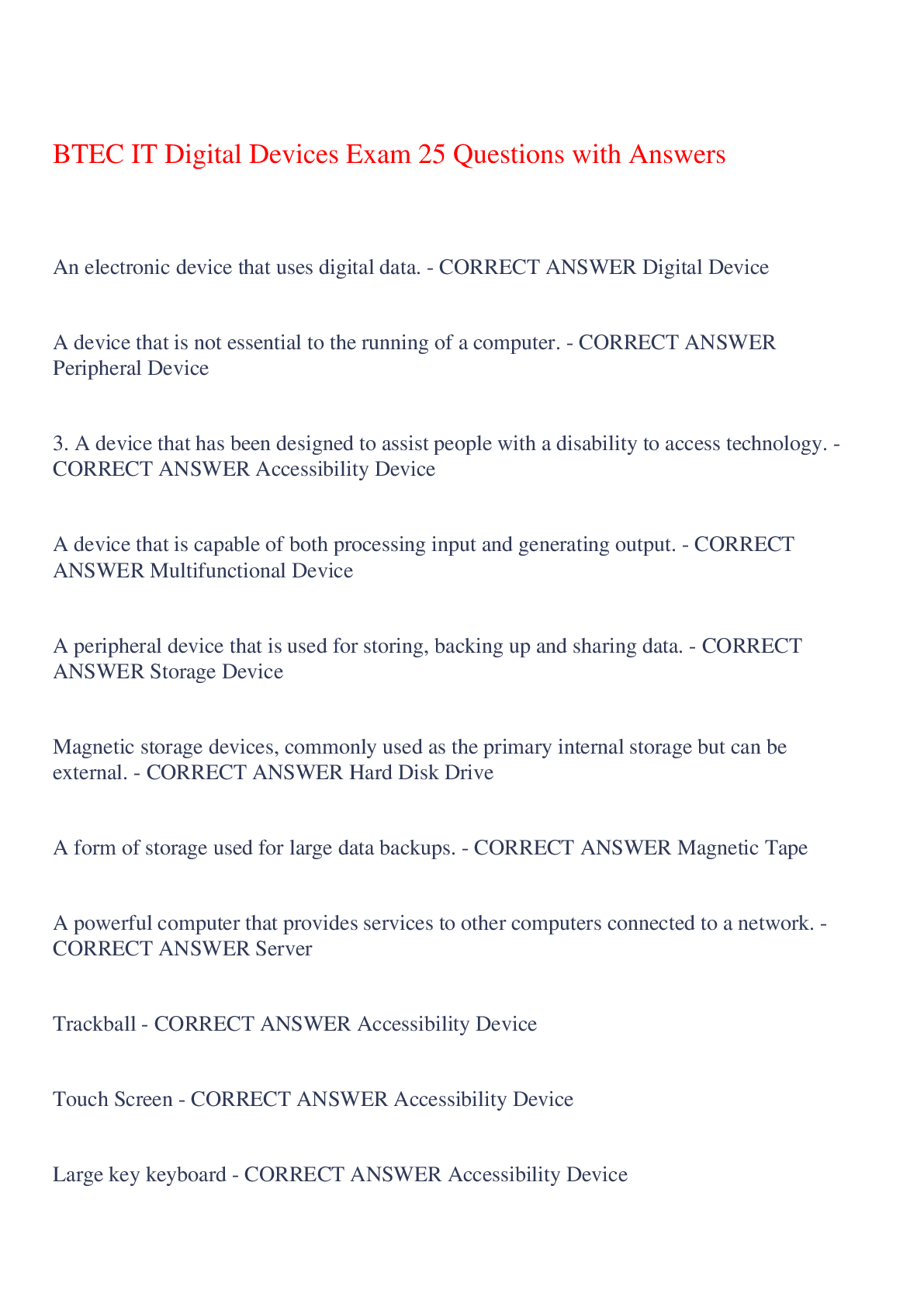 Information Technology > EXAM > BTEC IT Digital Devices Exam 25 Questions with Answers,100% CORRECT (All)