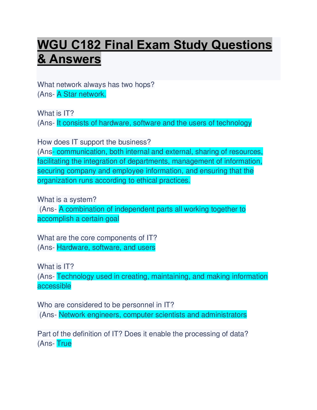 Information Technology > EXAM > WGU C182 Final Exam: Study Questions & Answers: Updated Solution (All)