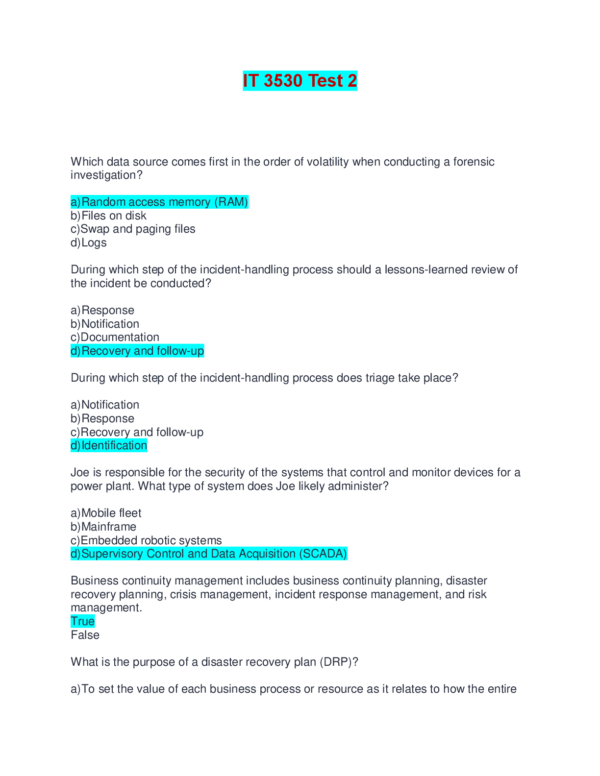 Information Technology > EXAM > IT 3530 Test 2 | Questions with complete solutions (All)