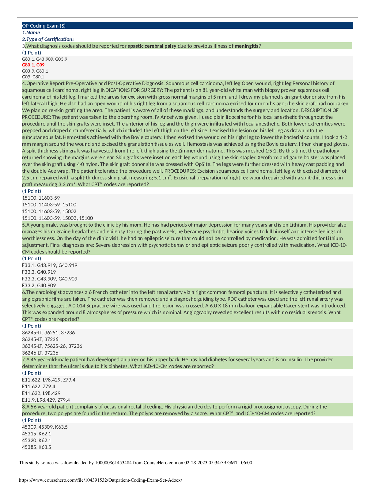 Information Technology > CODING SOLUTION > CODING 001 Outpatient Coding Exam Set A (GRADED A) Coding certification .org (All)
