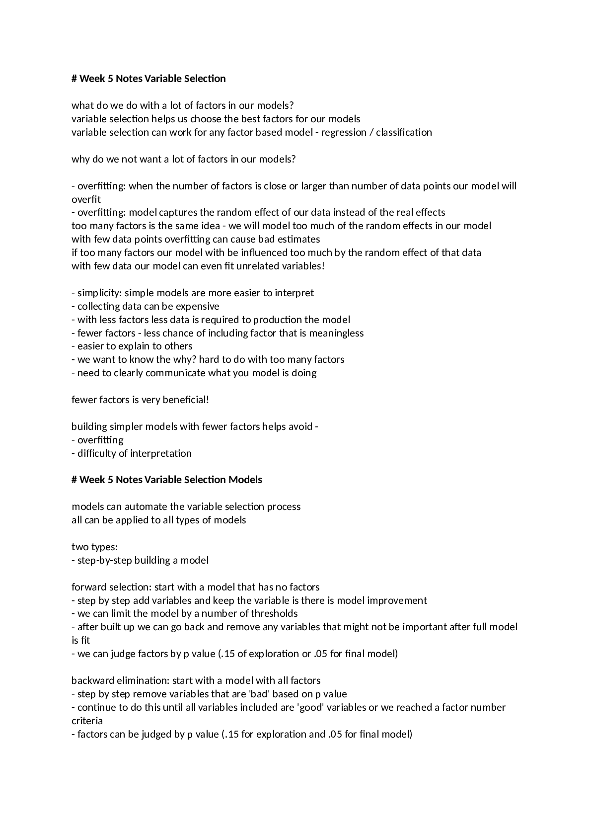 Information Technology > LECTURE SLIDES/NOTES > Georgia Institute Of Technology ISYE 6501 Lecture Notes ISYE 6501 Midterm 2 (All)