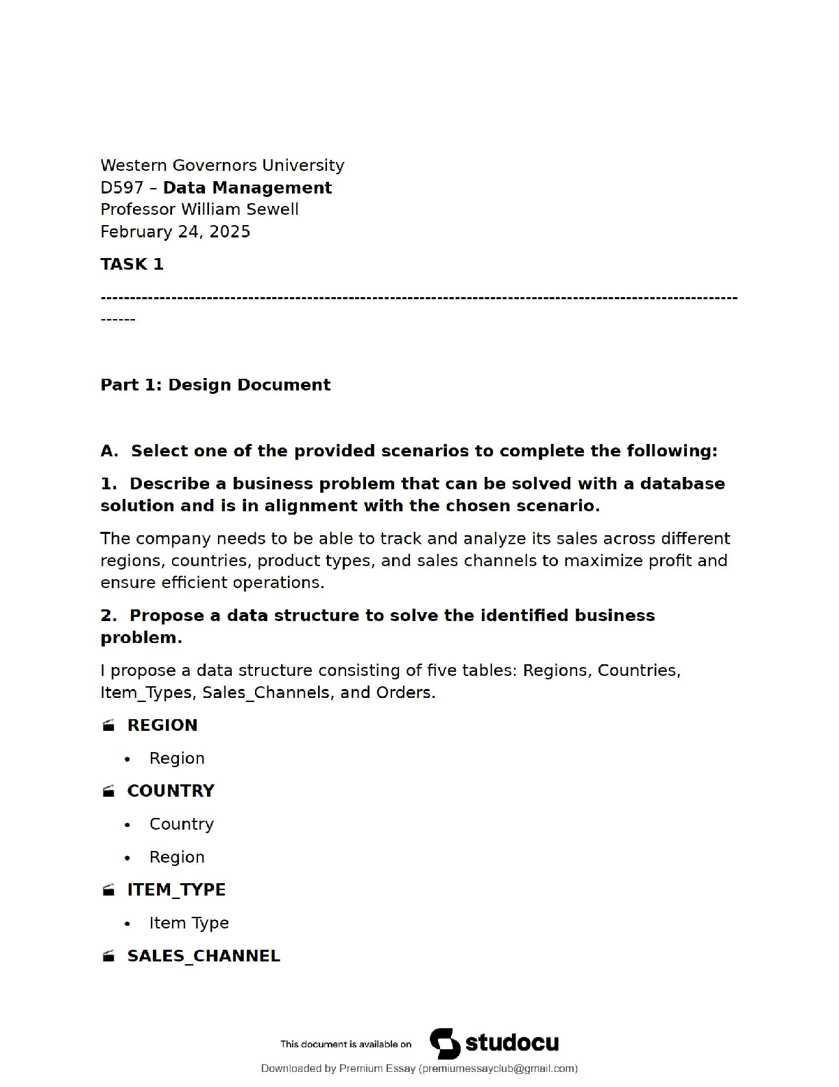 Information Technology > QUESTIONS & ANSWERS > "D597 Task 1 – Database Design & Management Solution Analysis | WGU IT Program" (All)
