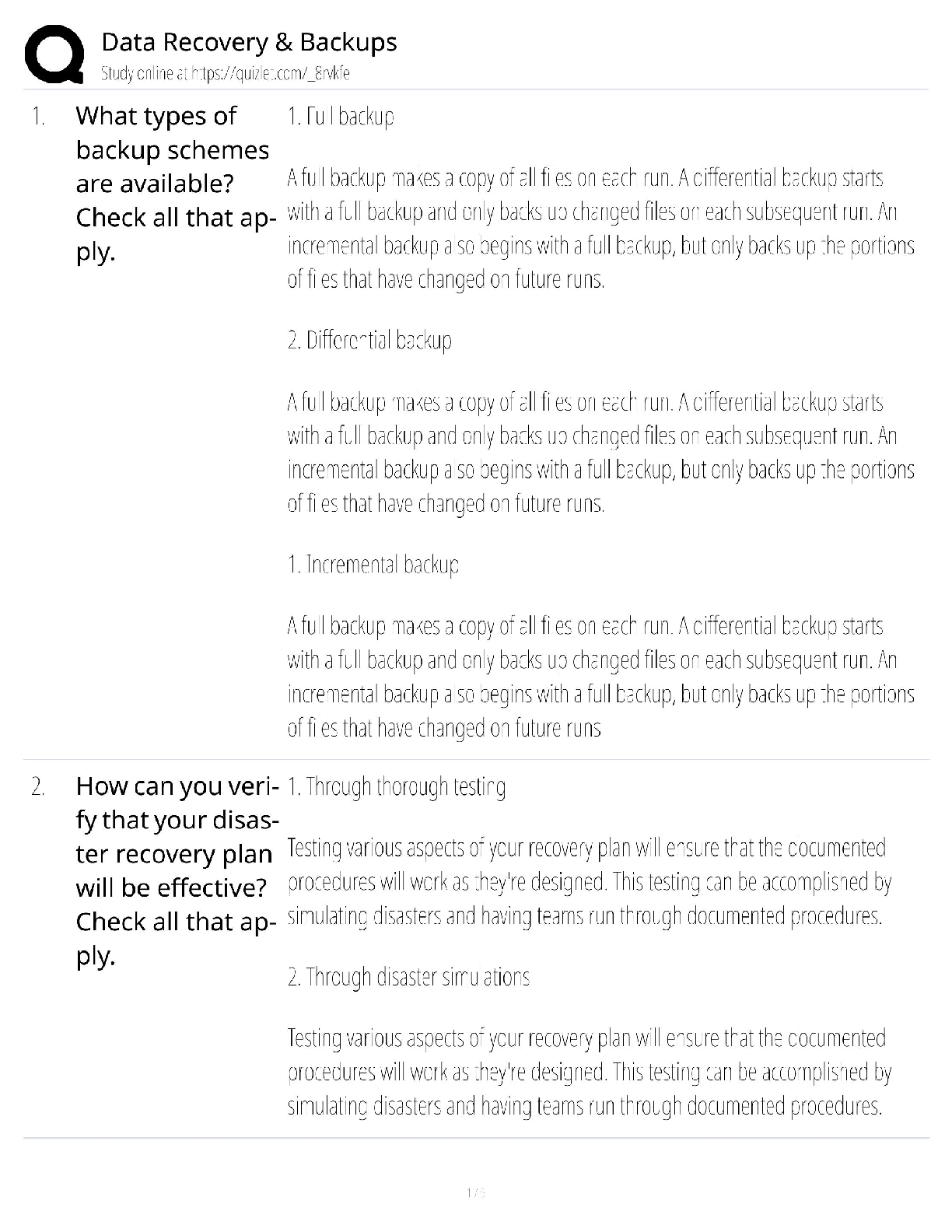 Information Technology > QUESTIONS & ANSWERS > Data Recovery & Backups / Certification Exam Prep / 2025 Update / Score 100% (All)