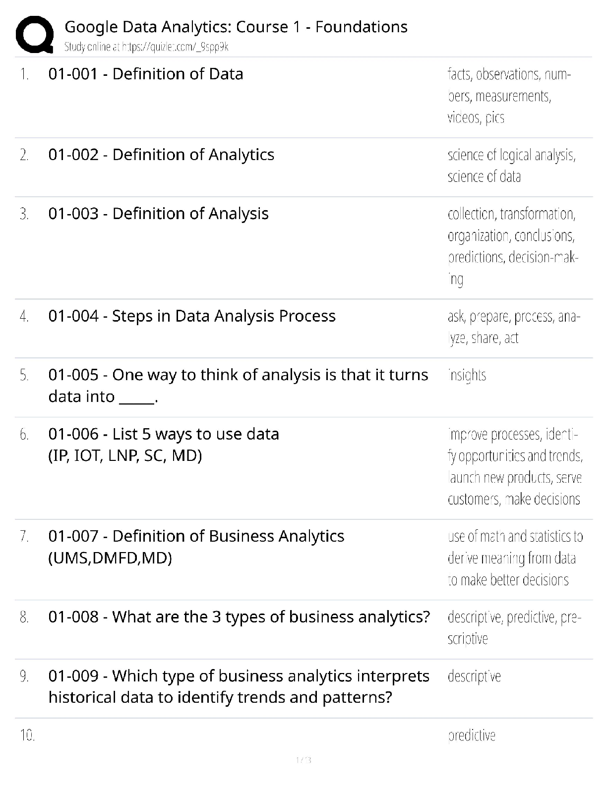 Information Technology > QUESTIONS & ANSWERS > Google Data Analytics Course 1 / Foundations Quiz Answers / 2025 Update / Pass with 100% (All)