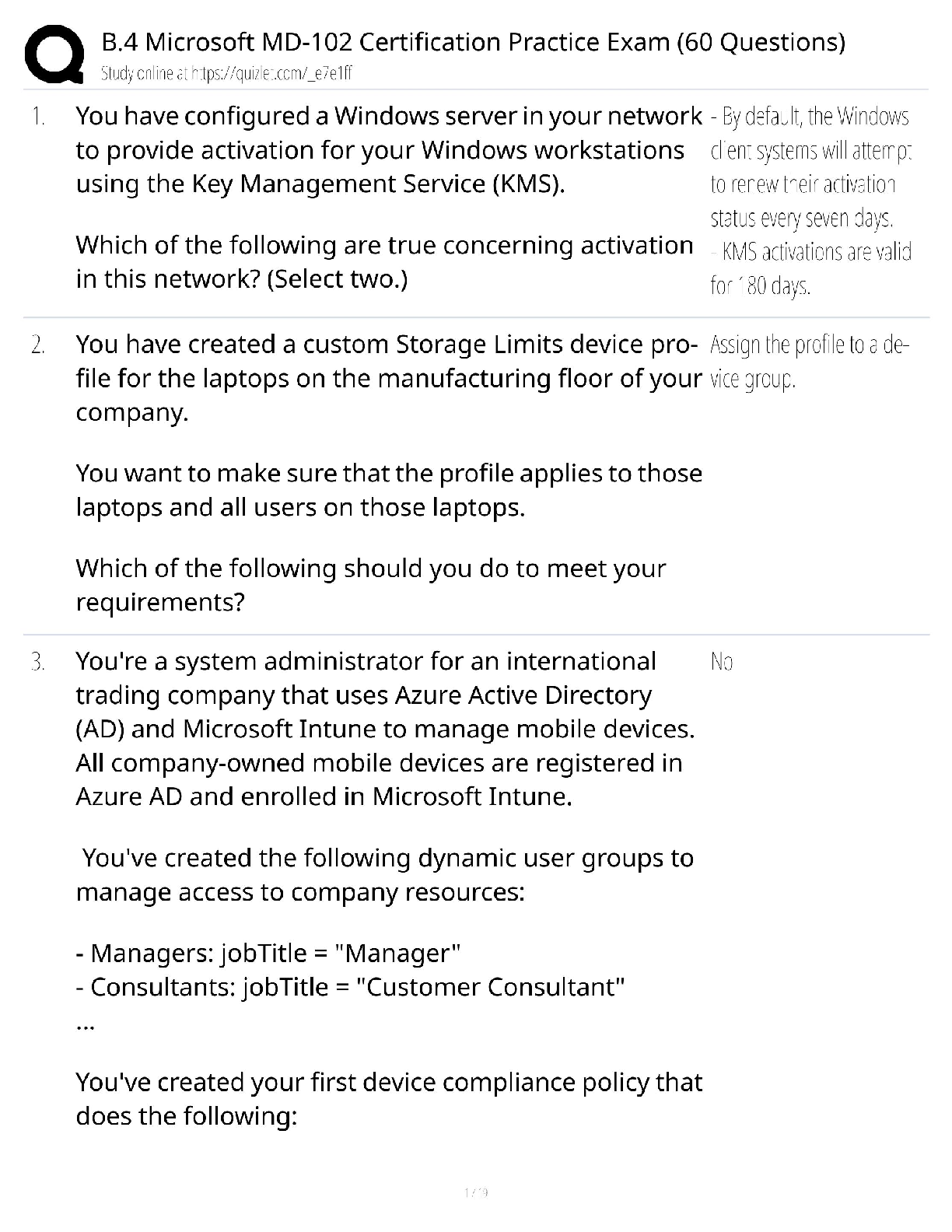 Information Technology > QUESTIONS & ANSWERS > Microsoft MD-102 Certification Practice Exam / Score 100% / 2025 Test Bank & Study Guide (All)