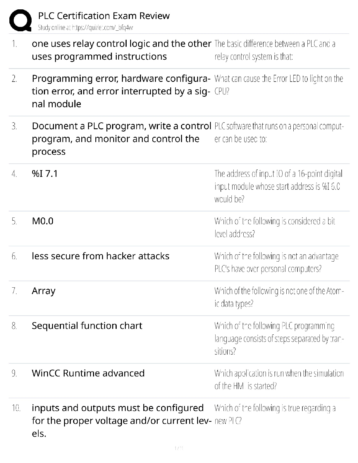 Information Technology > QUESTIONS & ANSWERS > PLC Certification Exam Review / Score 100% / 2025 Study Guide & Test Bank (All)