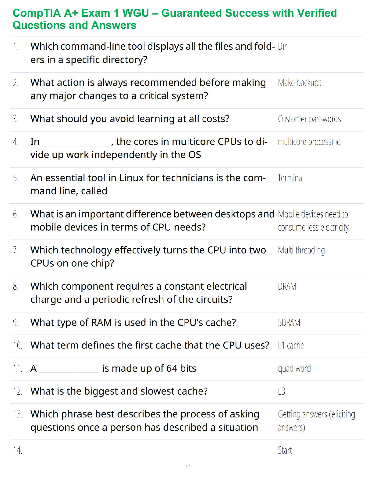 Information Technology > QUESTIONS & ANSWERS > CompTIA A+ Exam 1 WGU – Guaranteed Success with Verified Questions and Answers (All)
