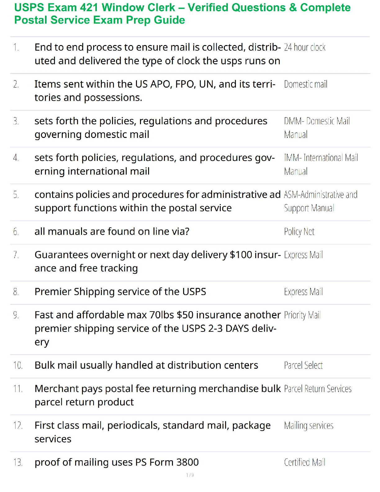 Information Technology > QUESTIONS & ANSWERS > USPS Exam 421 Window Clerk – Verified Questions & Complete Postal Service Exam Prep Guide (All)
