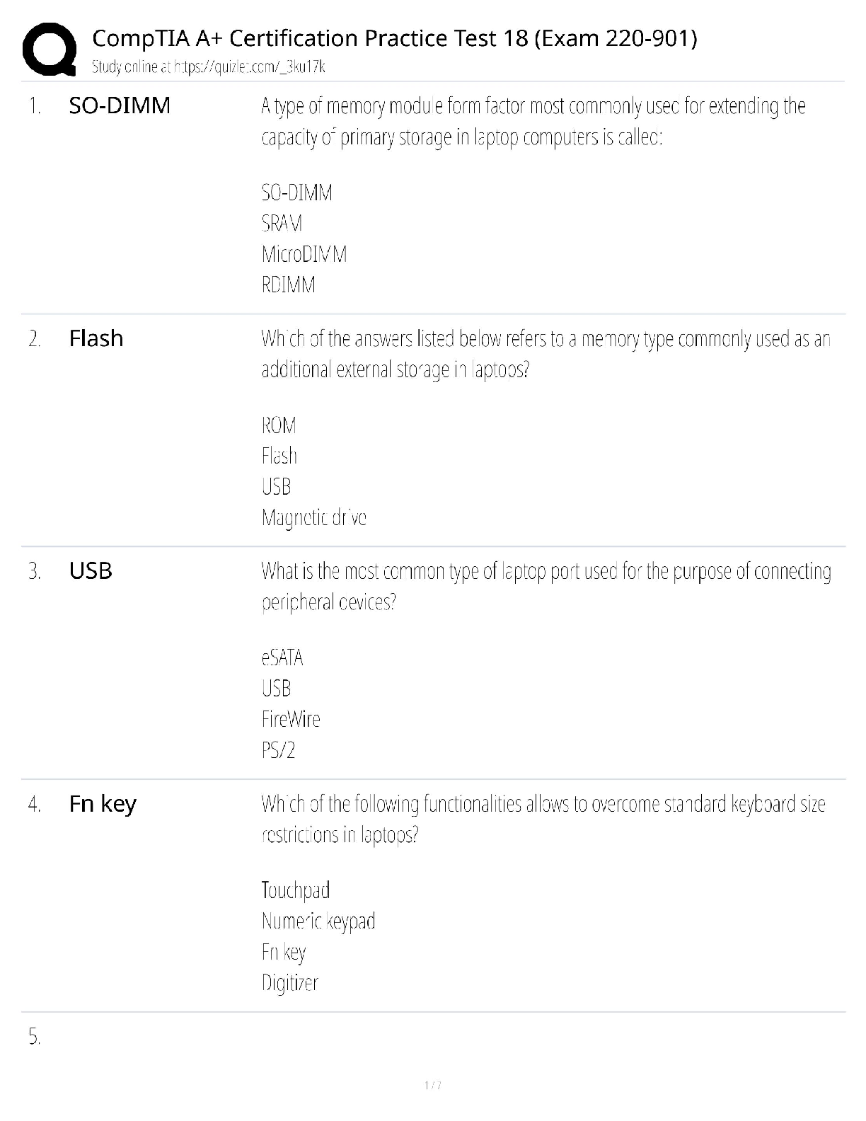 Information Technology > QUESTIONS & ANSWERS > CompTIA A+ Practice Test 18 / Exam 220-901 / 2025 Retired Exam Review / Score 100% / Core Legacy Prep (All)