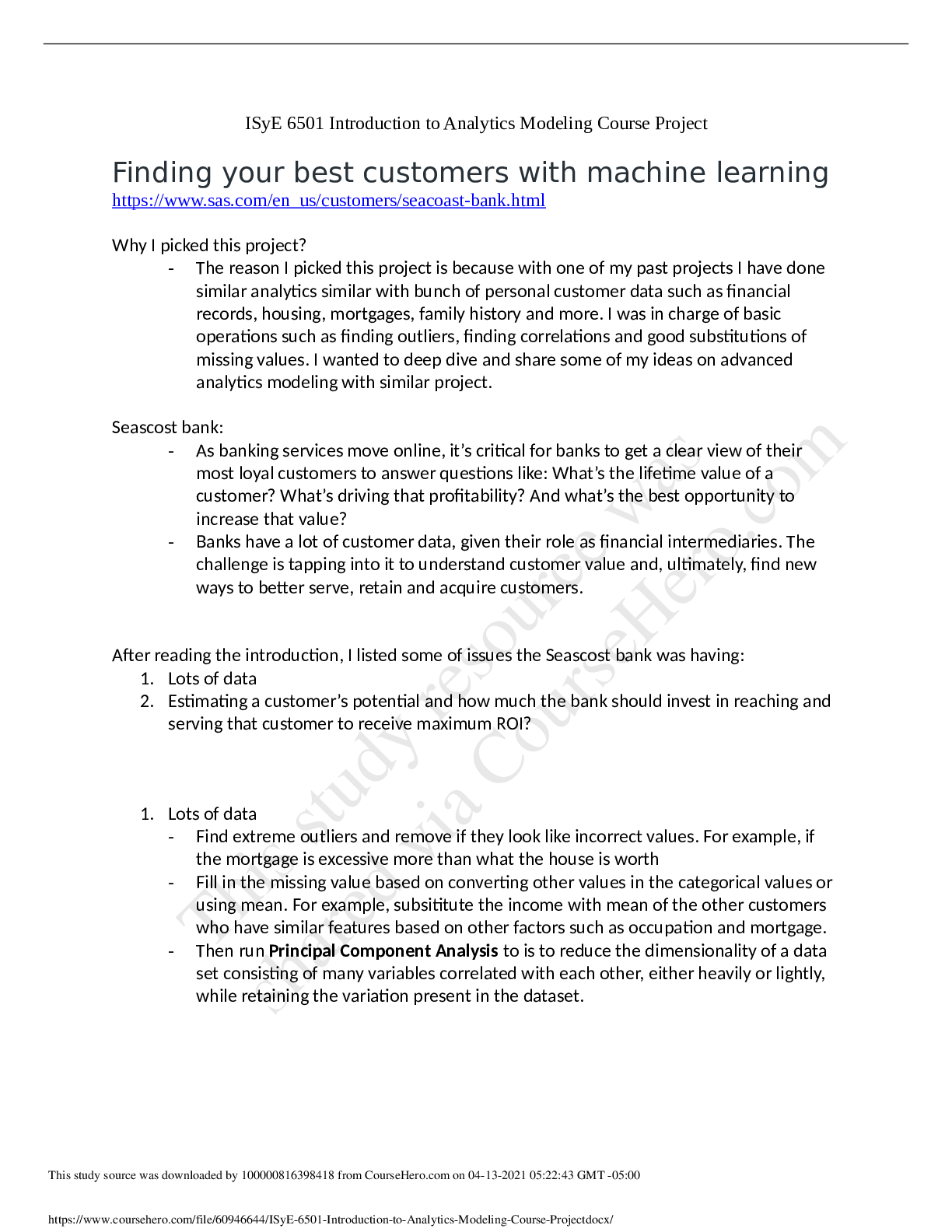 Information Technology > PROJECT FINAL > Georgia Institute Of Technology - ISYE 6501ISyE 6501 Introduction to Analytics Modeling Course Project (All)
