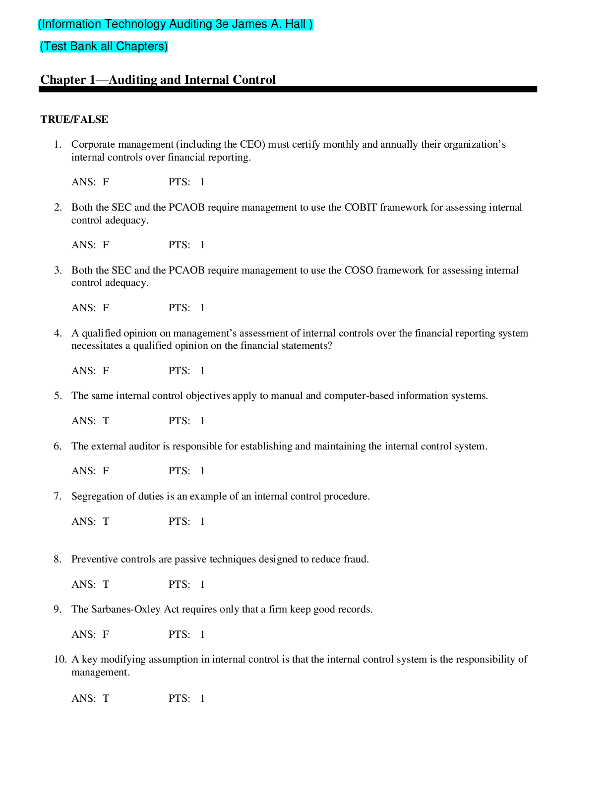 Information Technology > TEST BANKS > Information Technology Auditing 3e James A. Hall (Test Bank) (All)