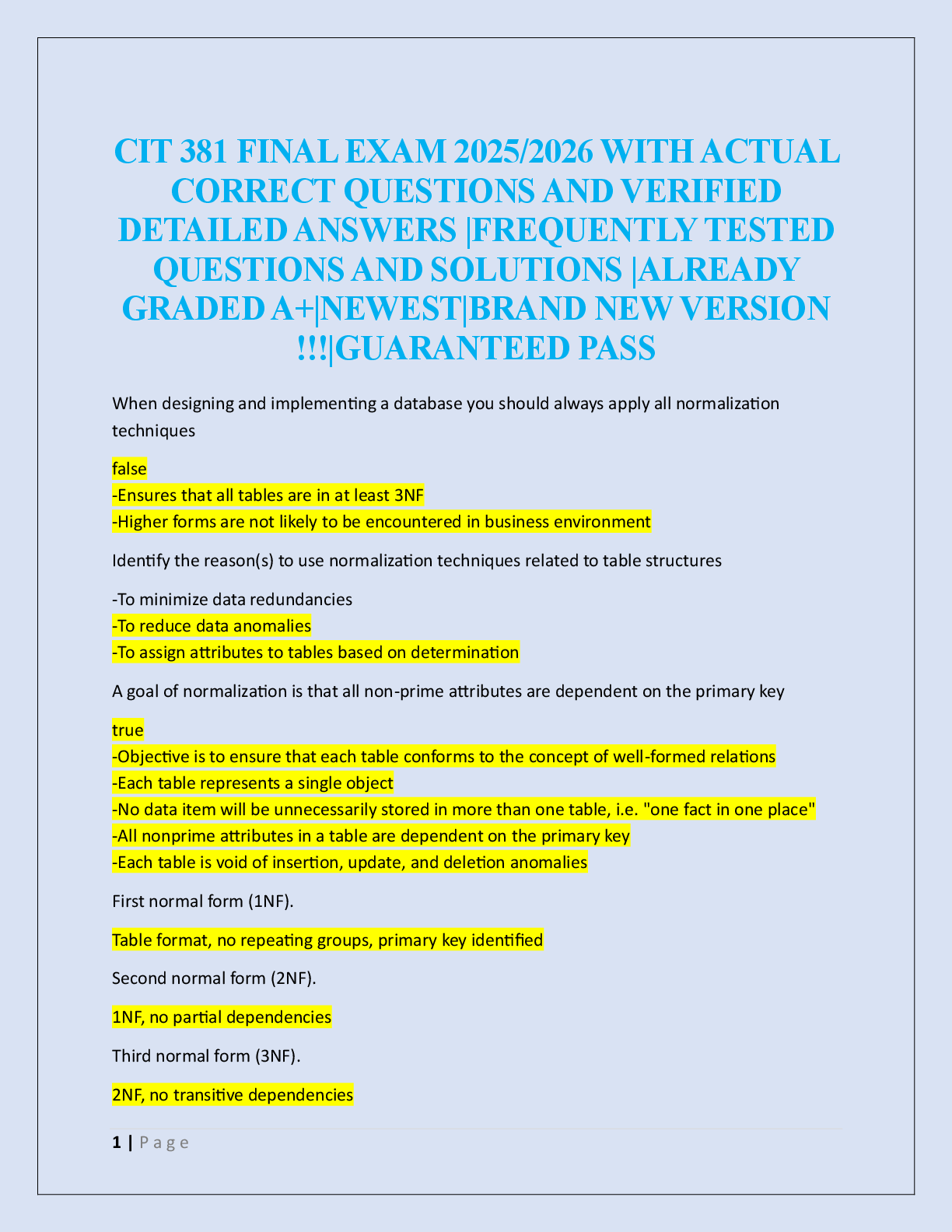 Information Technology > EXAM > CIT 381 FINAL EXAM 2025/2026 (All)