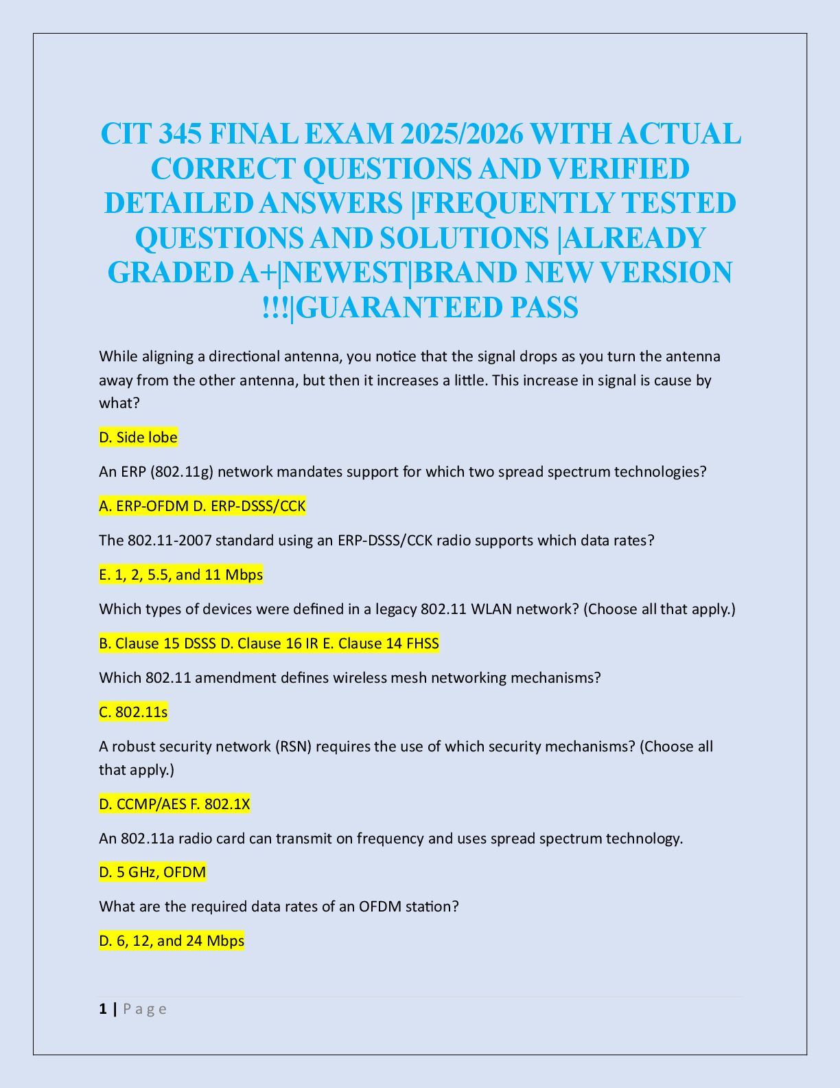 Information Technology > EXAM > CIT 345 FINAL EXAM 2025/2026 (All)